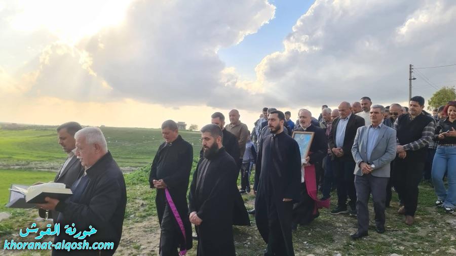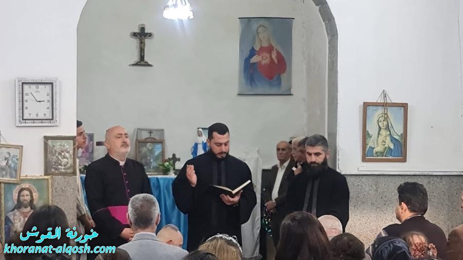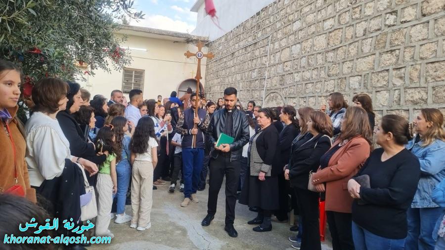 عند الساعة الرابعة ظهراً، انطلقت مراسم الصلاة تلاها الزياح، بمشاركة الخوراسقف الاب د. غزوان يوسف شهارا والأب رودي الصفار والاب ادم سليمان والاب اندرو جما، إلى جانب مشاركة عدد من الشمامسة، إضافة إلى جمع غفير من أبناء القوش والمناطق المجاورة.
