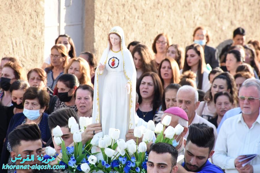 احتفلت كنيسة مار كوركيس في القوش عصر يوم الاثنين 31 ايار 2021 بأختتام الشهر المريمي و التأمل المريمي و زياح الوردية المقدسة و تتويج العذراء مريم ملكة الكون.