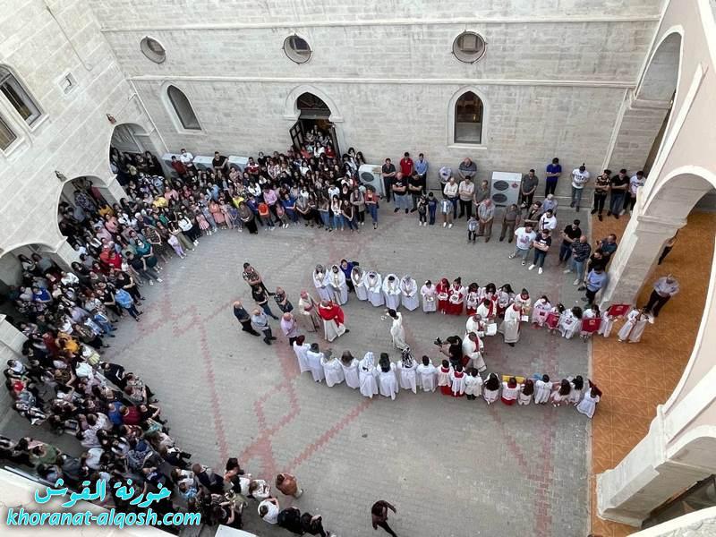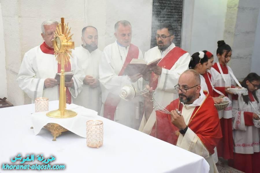 احتفلت كنائس خورنة القوش يوم الخميس 3 حزيران 2021 بمناسبة عيد الجسد ” عيد القربان المقدس ” منذ الصباح، حيث اقيمت القداديس في كنيسة مار قرداغ ومار كوركيس معلنة بدء احتفالية عيد الجسد. وعند الساعة الخامسة عصراً ترأس الاب د.سلار بوداغ خوري الكنيسة قداس العصر بعد صلاة الرمش بمشاركة الشمامسة والشماسات وجمع غفير من اهالي البلدة.وبعد رتبة القداس الالهي اقيمت مراسيم زياح القربان المقدس.