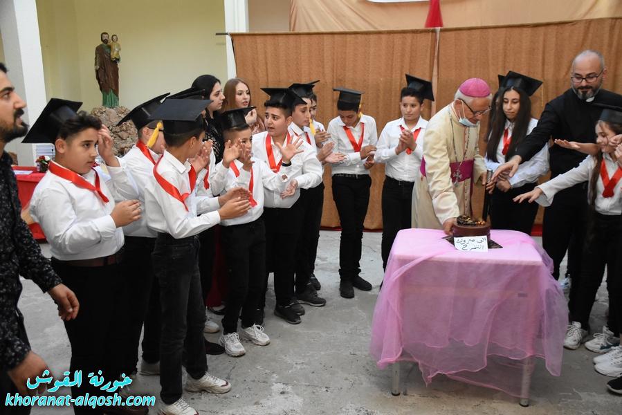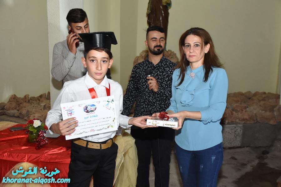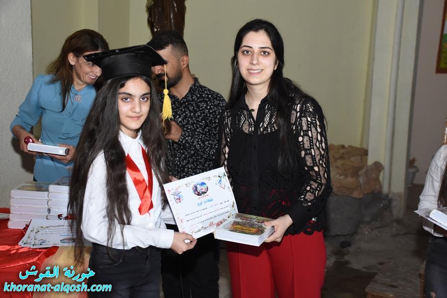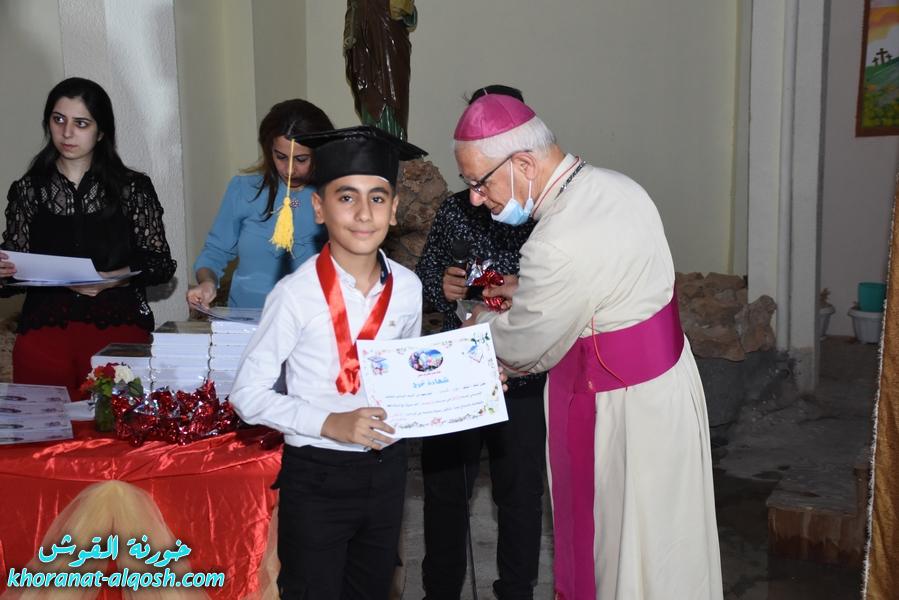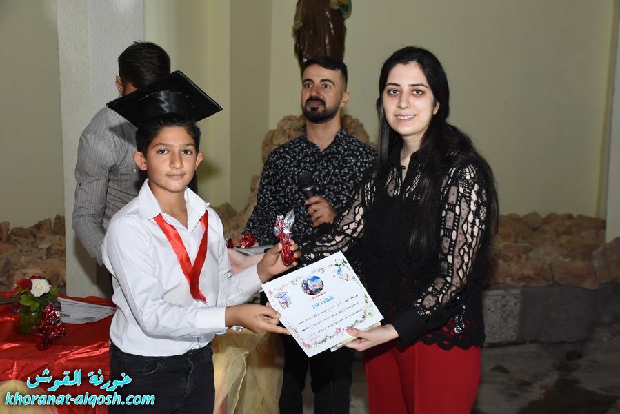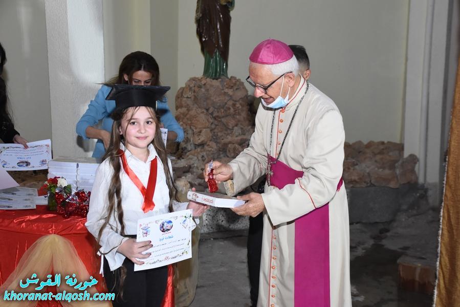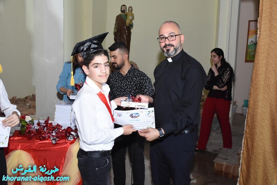 حضر الاحتفالية سيادة المطران مار ميخائيل المقدسي راعي ابرشية القوش الكلدانية والاب د. سلار بوداغ خوري الكنيسة والاب رودي الصفار وعدد من اهالي الخريجين ومعلمي التعليم المسيحي.