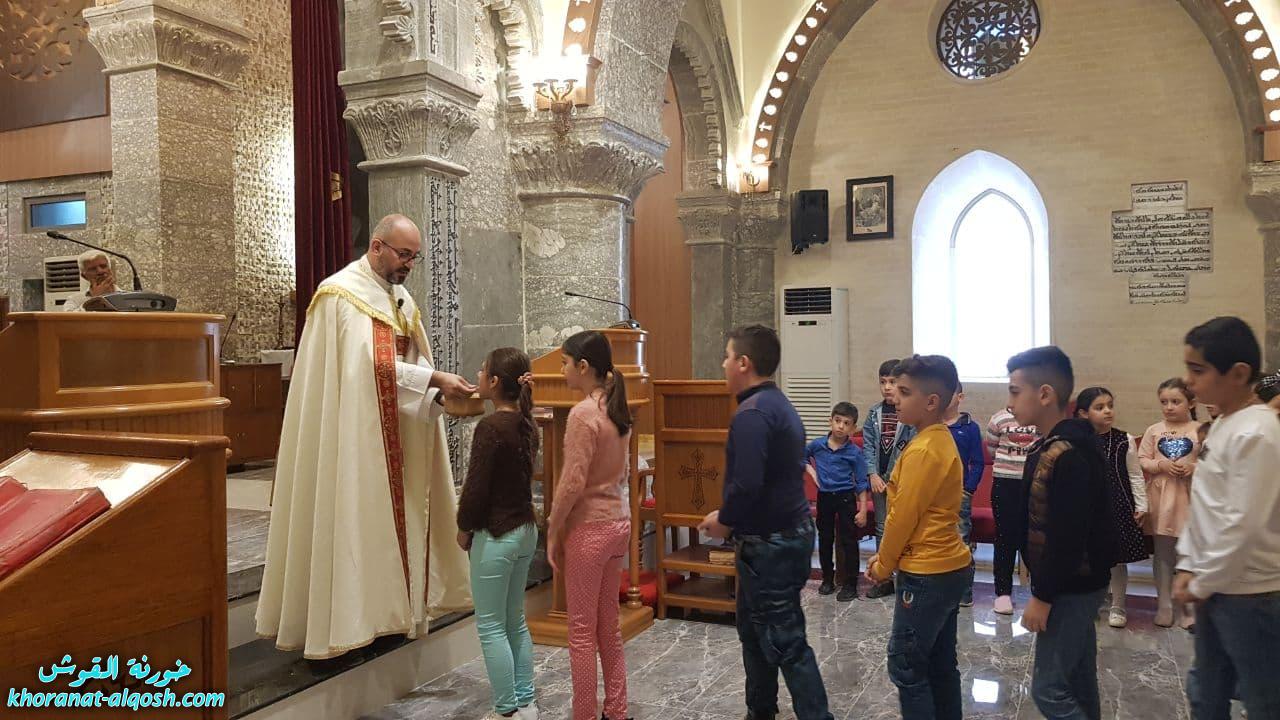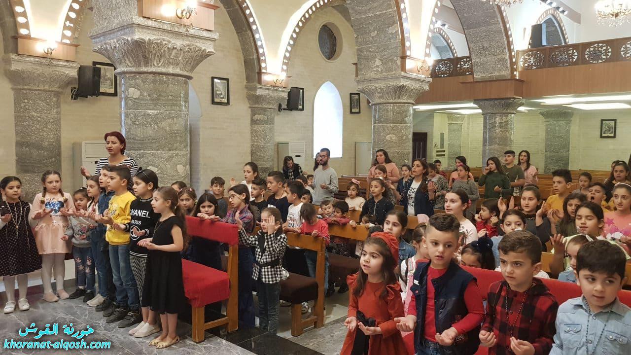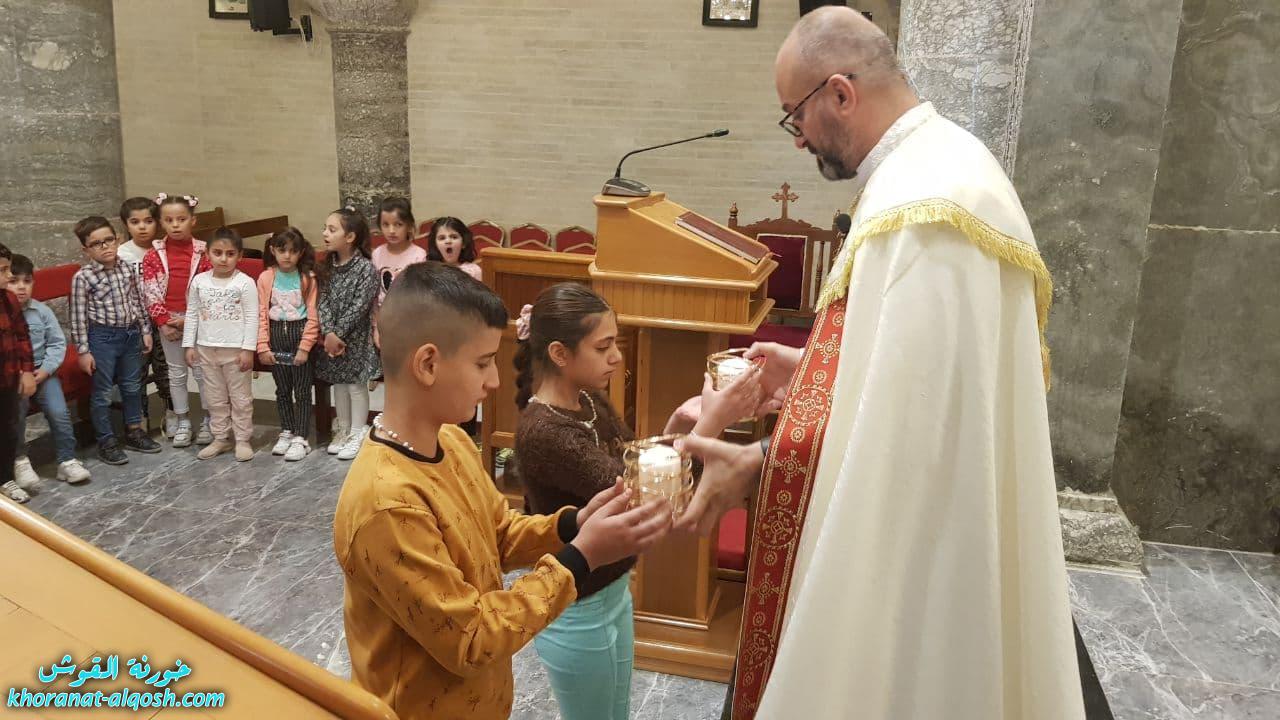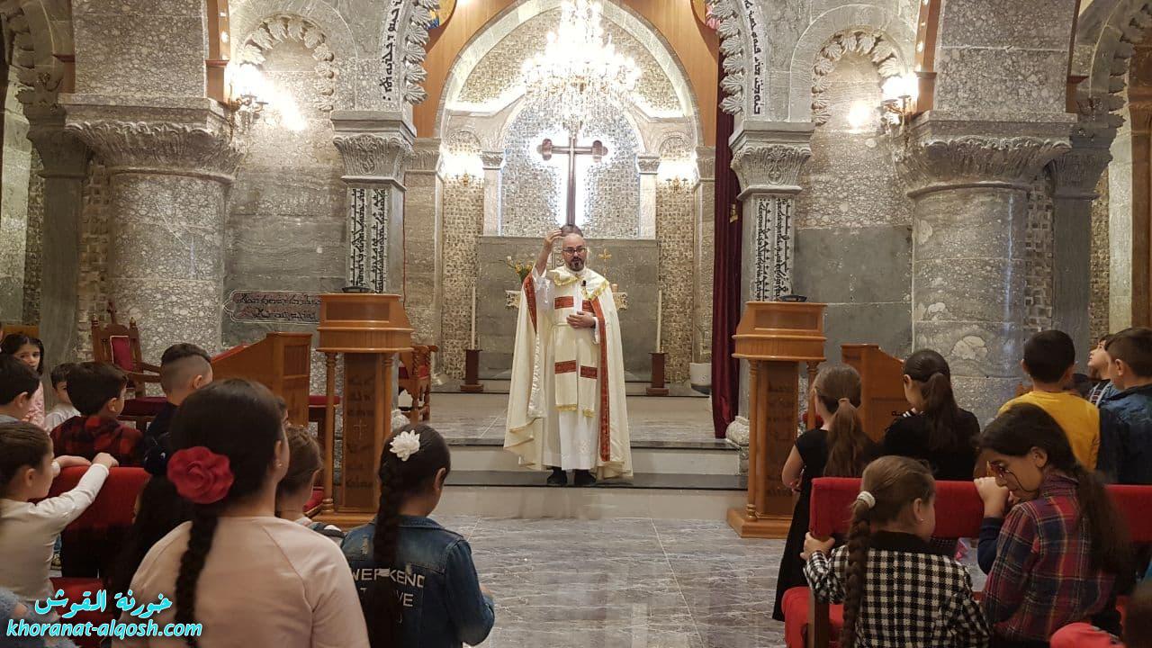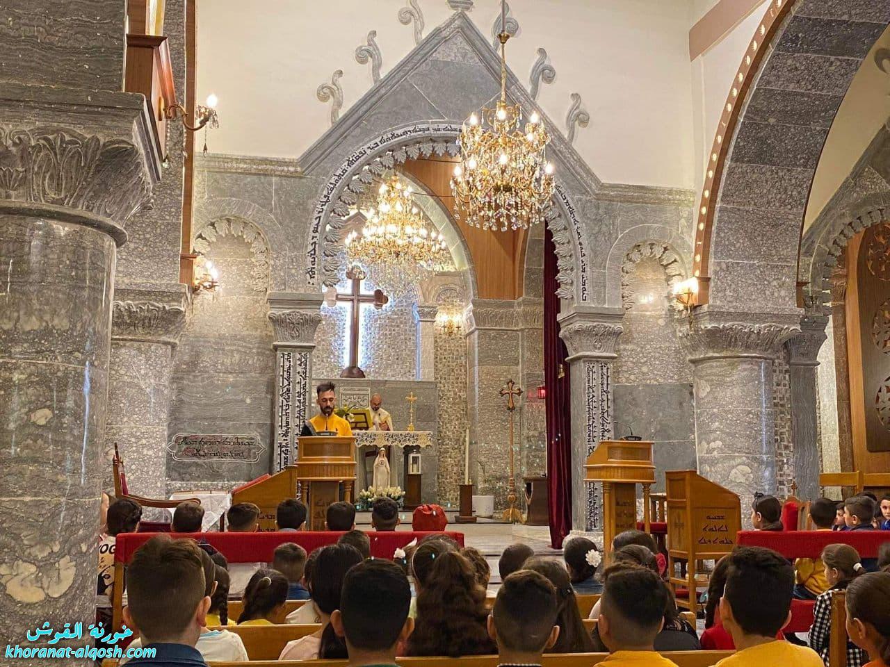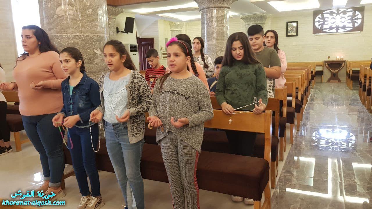 بمناسبة بدء الدورة الشتوية للتعليم المسيحي نظم كادر الدورة صلاة الوردية مع الاطفال في كنيسة مار كوركيس وذلك صباح اليوم الجمعة 29 تشرين الاول 2021 تضامناً مع ملايين الاطفال في العالم الذين دعاهم البابا فرنسيس للصلاة من اجل العالم، بعدها اقام الأب د.سلار بوداغ خوري كنيسة القوش، قداساً الهياً شرح في موعظته عن معنى القداس الالهي كوقت لقاء يسوع صديق الاطفال وكيف انه الخبر الحب الذي يطعم الجياع والفقراء، ويسلي الحزانى ويشفي المرضى.