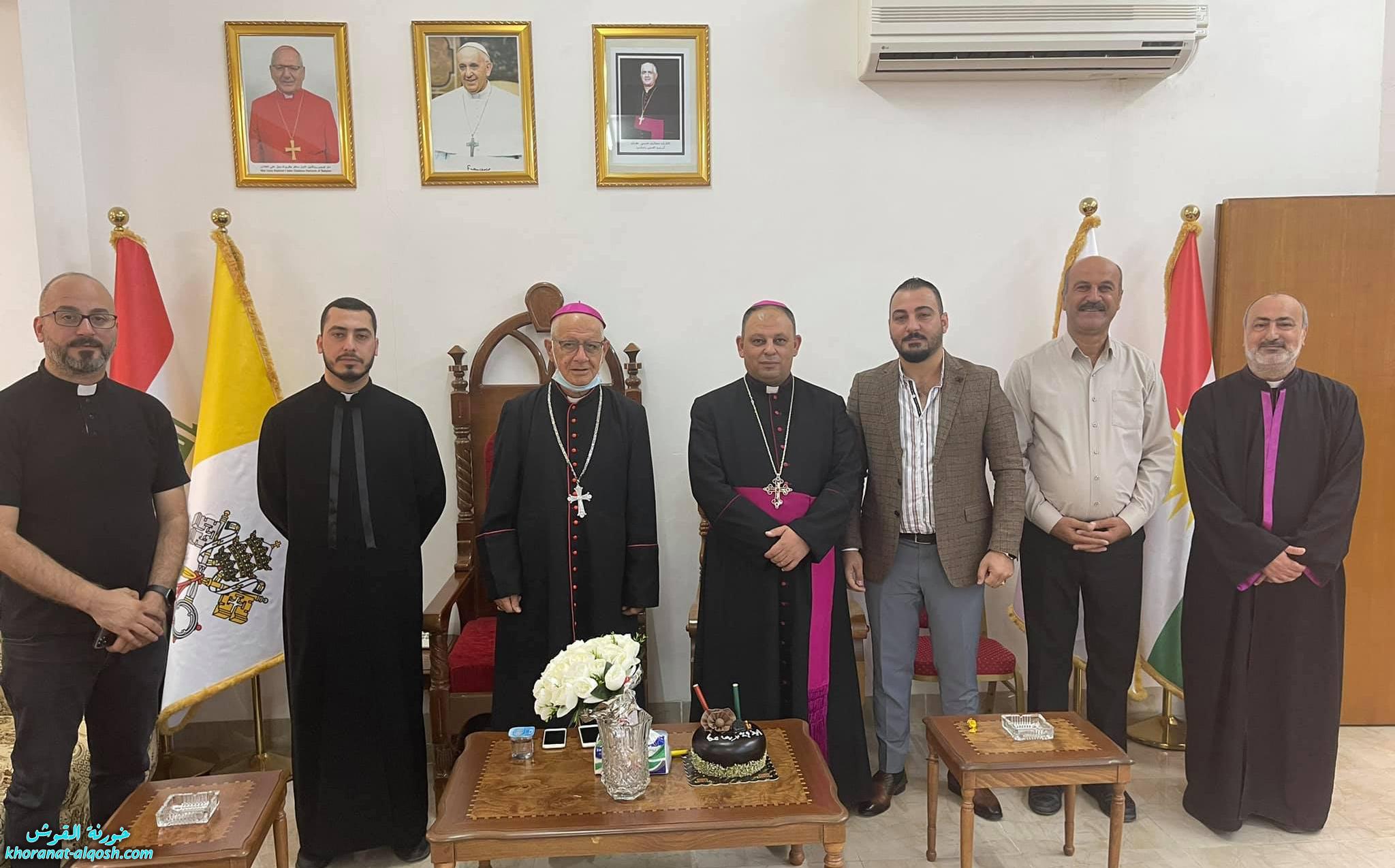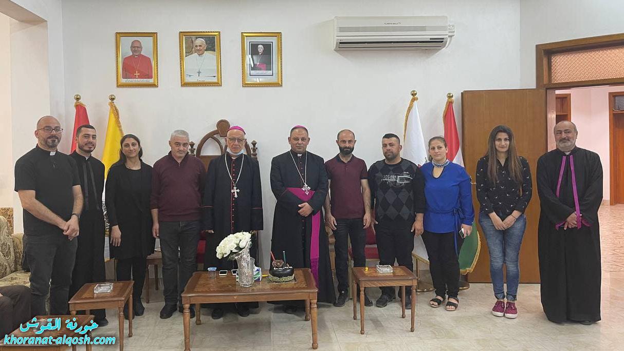 لليوم الثاني على اليوم استقبل الاسقف الجديد المساعد مار بولس ثابت المهنئين من اهالي القوش، بحضور سيادة المطران مار ميخائيل المقدسي والاباء الكهنة في دار المطرانية وذلك صباح اليوم الاحد الموافق 31 تشرين الاول 2021، مقدمين التهاني لسيادته بمناسبة رسامته مطراناً معاوناً على ابرشية القوش الكلدانية.