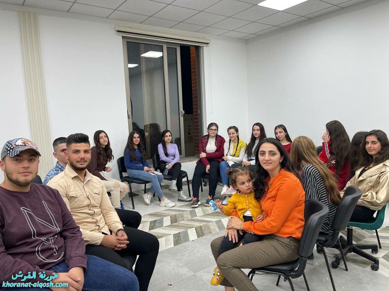 نظم لقاء الشباب للمرحلة الاعدادية لقاءً ترفيهياً متنوعاً ضم العديد من الانشطة الترفيهية والفكرية والذي تم تهيئته من اعضاء اللقاء يوم الخميس الموافق 11 تشرين الثاني 2021 في قاعة مركز المرأة في القوش.