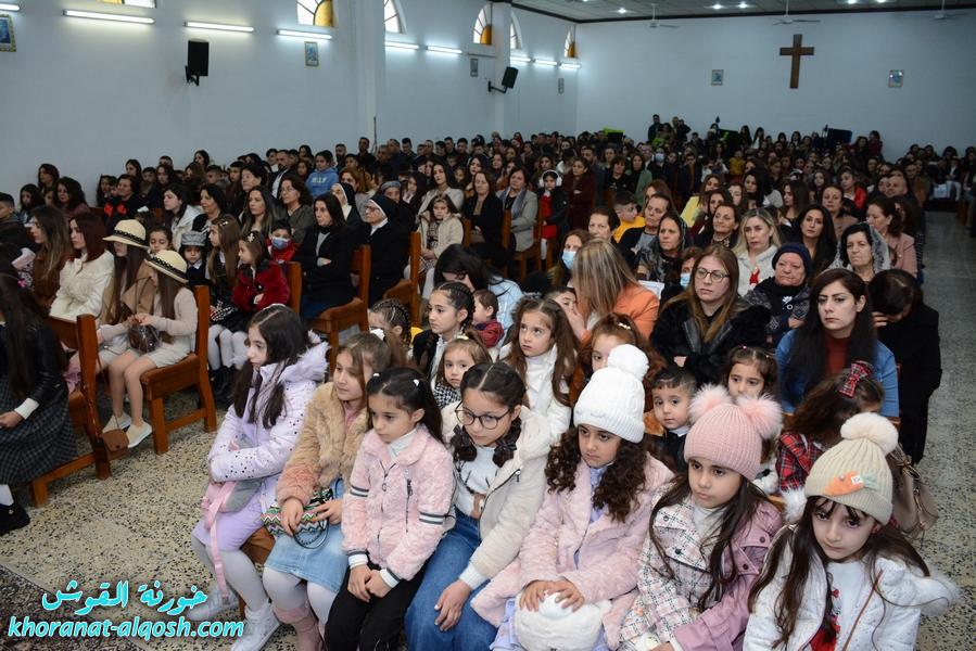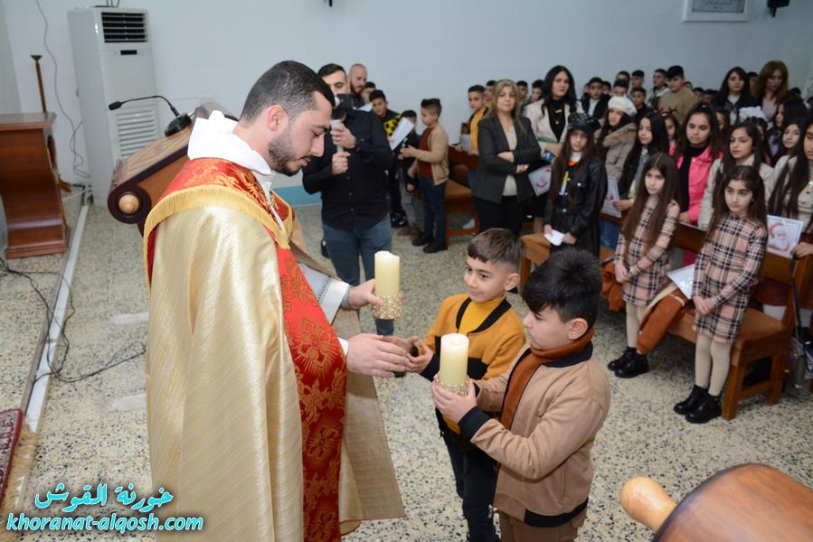 بمناسبة اعياد الميلاد المجيدة، احتفل الاب رودي الصفار كاهن كنيسة القوش، بقداس غروب الشمس لطلاب المدارس الابتدائية والمتوسطة واطفال الروضات وذلك عصر يوم الجمعة عشية ليلة الميلاد 24 كانون الاول 2021 في كنيسة مار قرداغ، بمشاركة الشمامسة والخدمة الكاملة للطلبة مع مشهد تمثيلي عن ولادة يسوع الطفل من اداء تلاميذ المدارس.