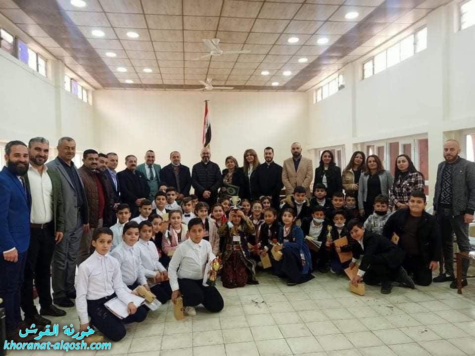 بغية رفع المستوى اللغوي والمعرفي للتلاميذ، اقام قسم الدراسة السريانية لتربية نينوى وبالتنسيق مع شعبة الدراسة السريانية في قضاء تلكيف ومشرفة اللغة السريانية ايفان شليمون ، مسابقة في اللغة السريانية لتلاميذ المدارس الابتدائية في ناحية القوش، وذلك يوم الاثنين الموافق 10 كانون الثاني 2022، بحضور السيد سمير يوخنا مدير قسم الدراسة السريانية لتربية نينوى والاباء الافاضل الاب د.سلار بوداغ خوري كنيسة القوش والاب رودي الصفار كاهن الكنيسة، اضافة لحضور مسؤولي كوادر الدراسة السريانية في تربية قضاء تلكيف ووحدة الدراسة السريانية في ممثلية وزارة التربية في دهوك ومدراء المدارس المشاركة والكوادر التعليمية فيها.