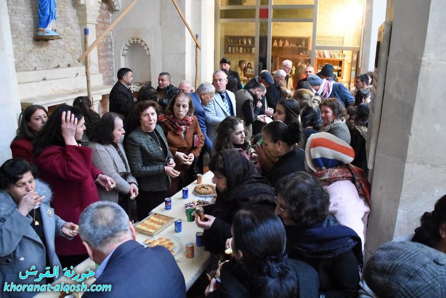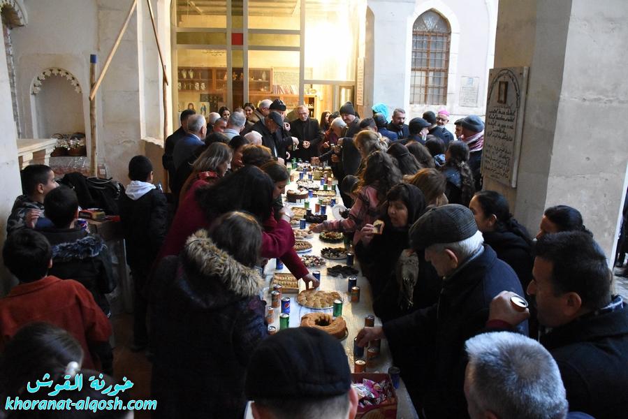 ثم توجه الجميع الى باحة الكنيسة لمقاسمة الحلويات والمعجنات والعصائر وتبادل التهاني والتحايا.