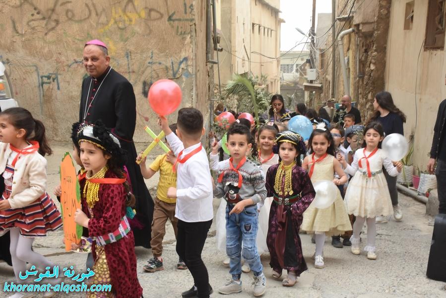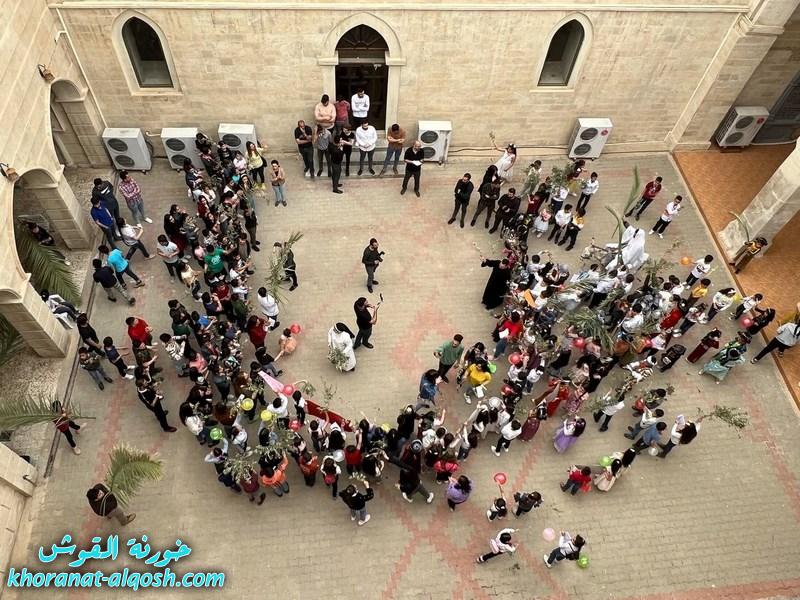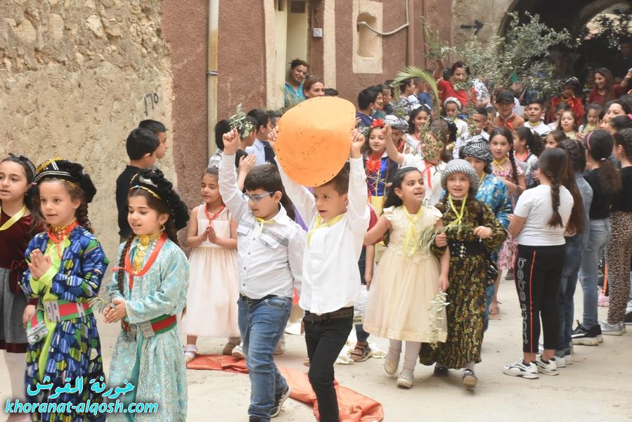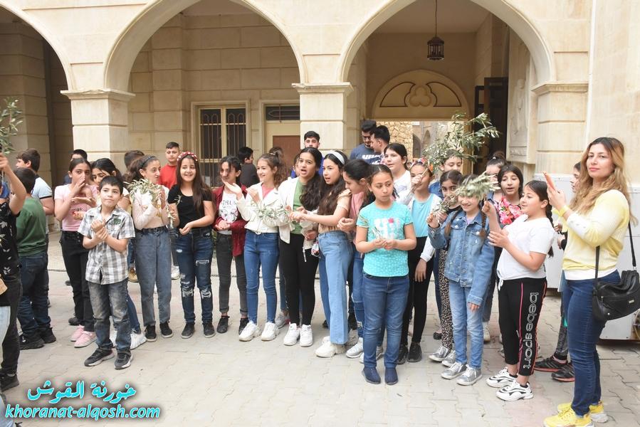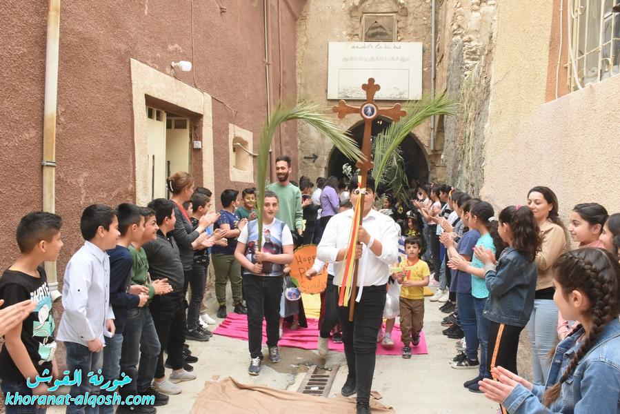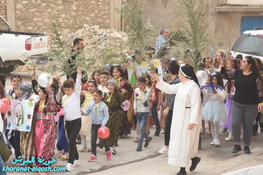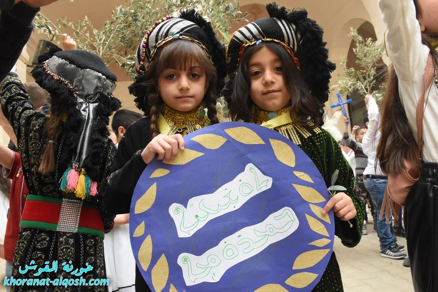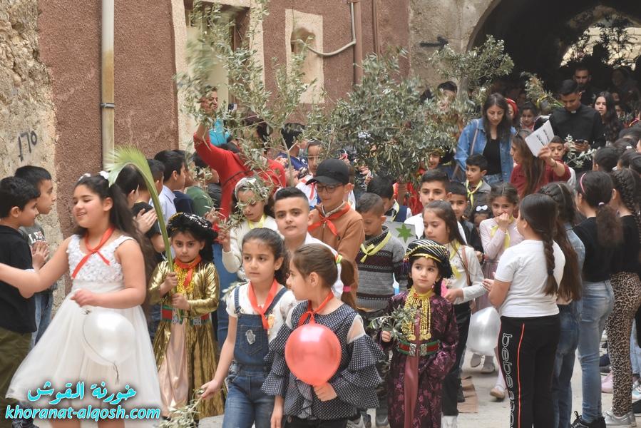 بهذه الايام المباركه احتفل طلاب التعليم المسيحي وكادرهم، بمناسبه عيد السعانين صباح اليوم الجمعة 8 نيسان 2022 في زوياح انطلق من قاعه ماريوسف إلى كنيسه ماركوركيس مروراً بشوارع البلدة القديمة وبيوتها، بحتاجر صدحت بالتراتيل الخاصة ” اوشعنا لابن داود ” بكل فرح وابتهاج في مشهد تمثيلي وهم يرتدون الزي الفلكلوري الالقوشي، كما و أقام معلمي التعليم المسيحي مع طلابهم مشهد تمثيلي يجسد اسبوع الالام وكيف غسل يسوع ارجل تلاميذه و مات على الصليب من أجل الخلاص وقام في اليوم الثالث منتصراً على الموت.