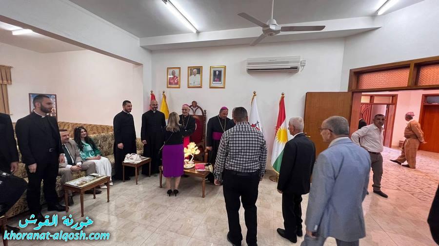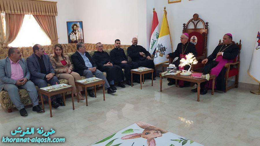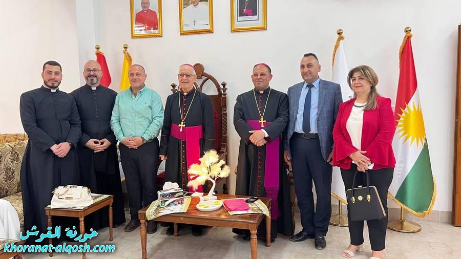 استقبل السادة الاساقفة المطران مار ميخائيل المقدسي راعي ابرشية القوش والمطران مار بولس ثابت الاسقف المساعد والاباء الكهنة الاب د.سلار بوداغ خوري الكنيسة والاب رودي الصفار والتلاميذ صباح اليوم الاحد 17 نيسان 2022 المهنئين بمناسبة عيد القيامة المجيدة في قاعة المطرانية من الساعة التاسعة والنصف صباحاُ ولغاية الثانية عشر والنصف ظهراً، حيث استقبلت المطرانية عدداً من مسؤولي و ممثلي الدوائر الحكومية وأحزاب شعبنا ومؤسسات المجتمع المدني فضلاً عن جموع غفيرة من المهنئين من أبناء الكنيسة ونشاطات الكنيسة من القوش والمناطق الاخرى.