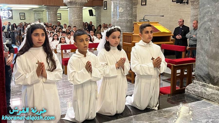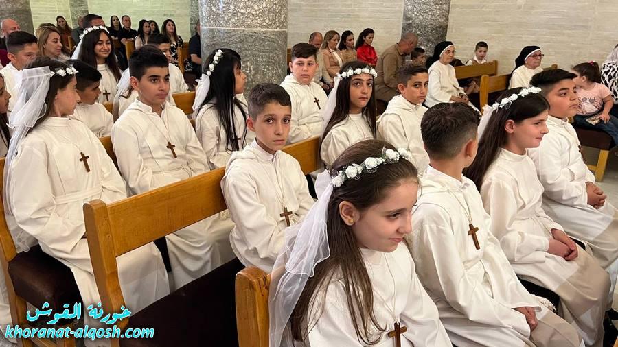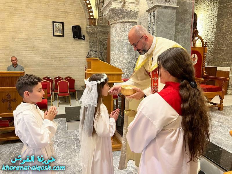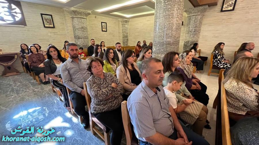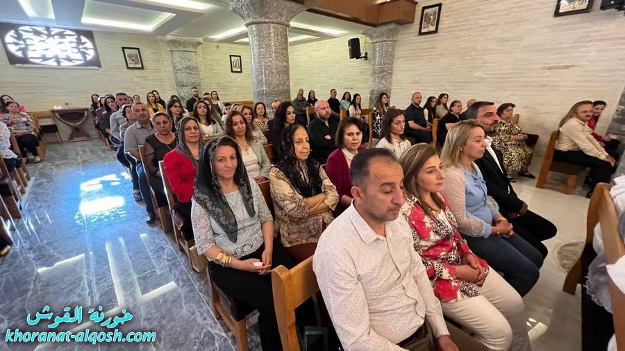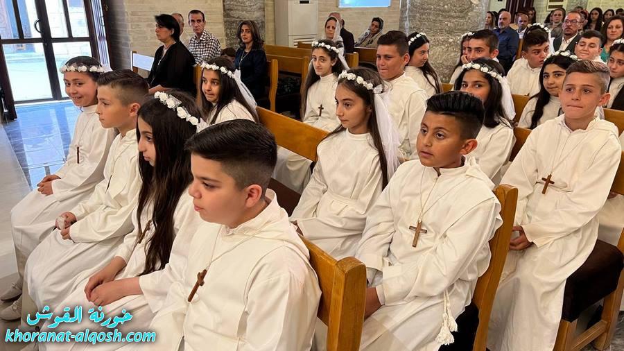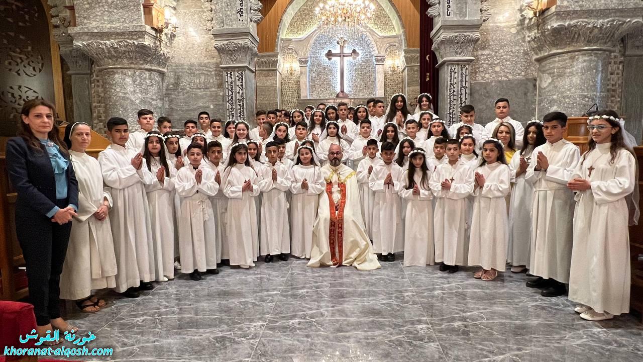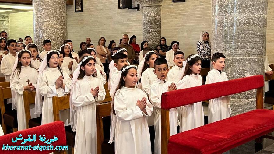 احتفلت كنيسة مار كوركيس في بلدة القوش بسهل نينوى، عصر اليوم الجمعة 29 نيسان 2022، بقداس الشكر لــ 64 متناول ومتناولة من القوش وبحضور أهاليهم في قداس ترأسة الاب د.سلار بوداغ خوري الكنيسة بمشاركة المتناولين في خدمة القداس، إذ قدموا الشكر لله على نعمة العظيمة باعطاءه جسده ودمه عربون الخلاص، واختتم القداس بزوياح والصلاة امام تمثال العذراء مريم في باحة الكنيسة.