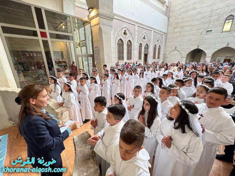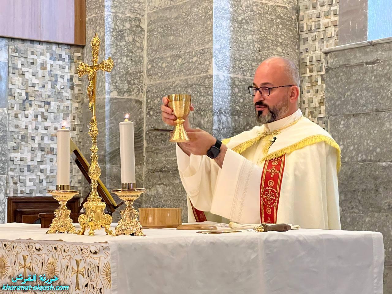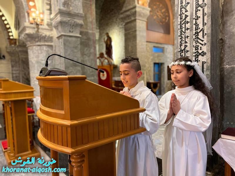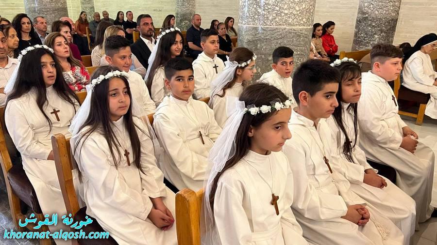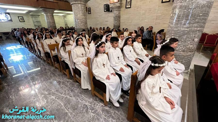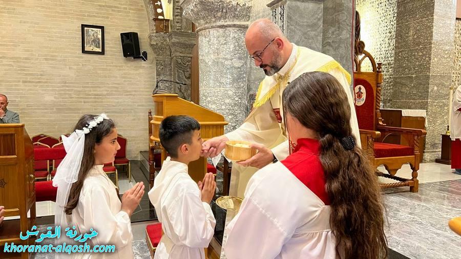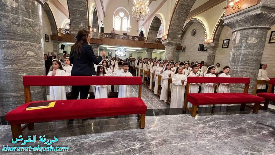 احتفلت كنيسة مار كوركيس في بلدة القوش بسهل نينوى، عصر اليوم الجمعة 29 نيسان 2022، بقداس الشكر لــ 64 متناول ومتناولة من القوش وبحضور أهاليهم في قداس ترأسة الاب د.سلار بوداغ خوري الكنيسة بمشاركة المتناولين في خدمة القداس، إذ قدموا الشكر لله على نعمة العظيمة باعطاءه جسده ودمه عربون الخلاص، واختتم القداس بزوياح والصلاة امام تمثال العذراء مريم في باحة الكنيسة.