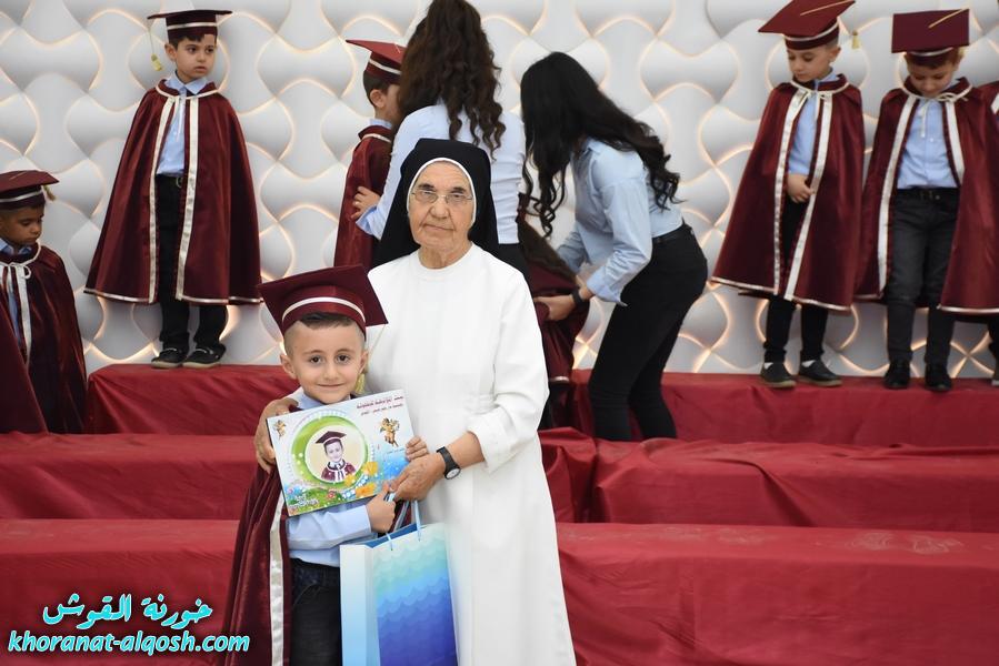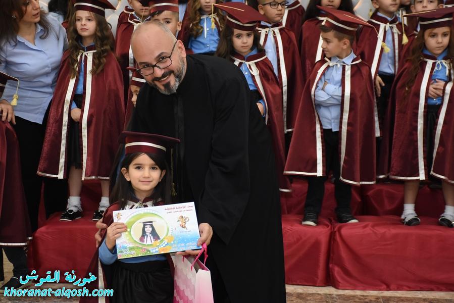 بعدها القى الاطفال شعر بالسورث شاكرين خلاله الكنيسة والكادر التعليمي لما بذلوه من جهود طوال هذه السنين وتقديم الورود لهم، ثم قص الجميع كعكة الاحتفالية وتوزيع الشهادات على الخريجين مع الهدايا المقدمة من الروضة.