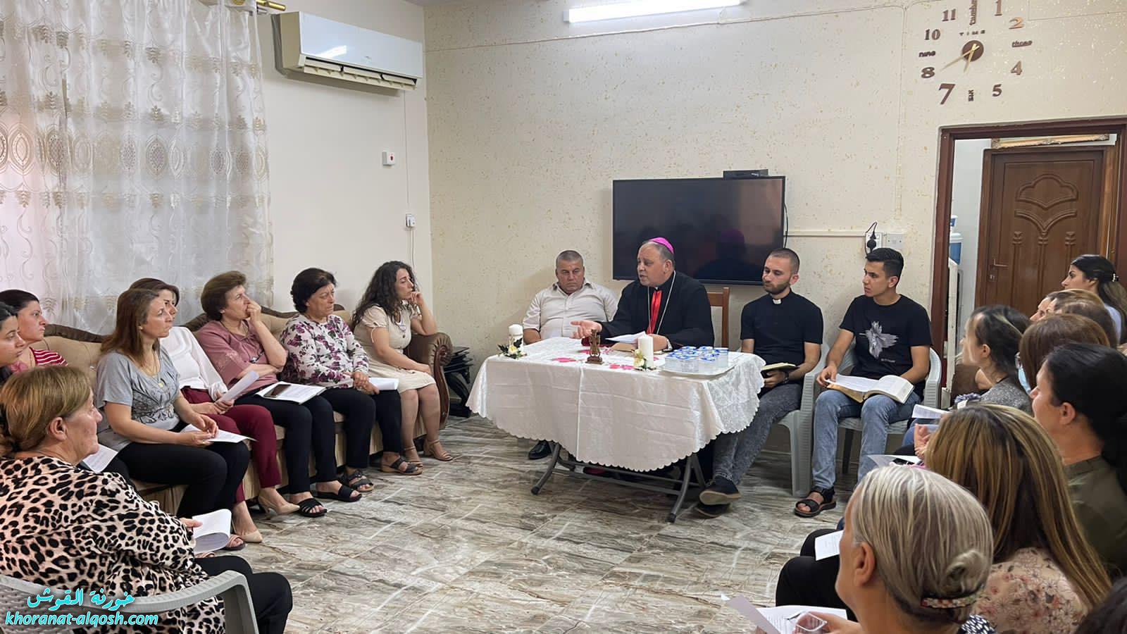 اقام سيادة المطران مار بولس ثابت المعاون الاسقفي لأبرشية القوش الكلدانية، لقاء قراءة الانجيل ” القراءة الربية” وذلك عصر اليوم الجمعة 15 تموز 2022 حيث تم قراءة وتقديم شرح تأملي وصلاة لنص انجيل لوقا ١٣: ١-٩، مع مجموعة من عوائل القوش في بيت عائلة استضافت اللقاء.