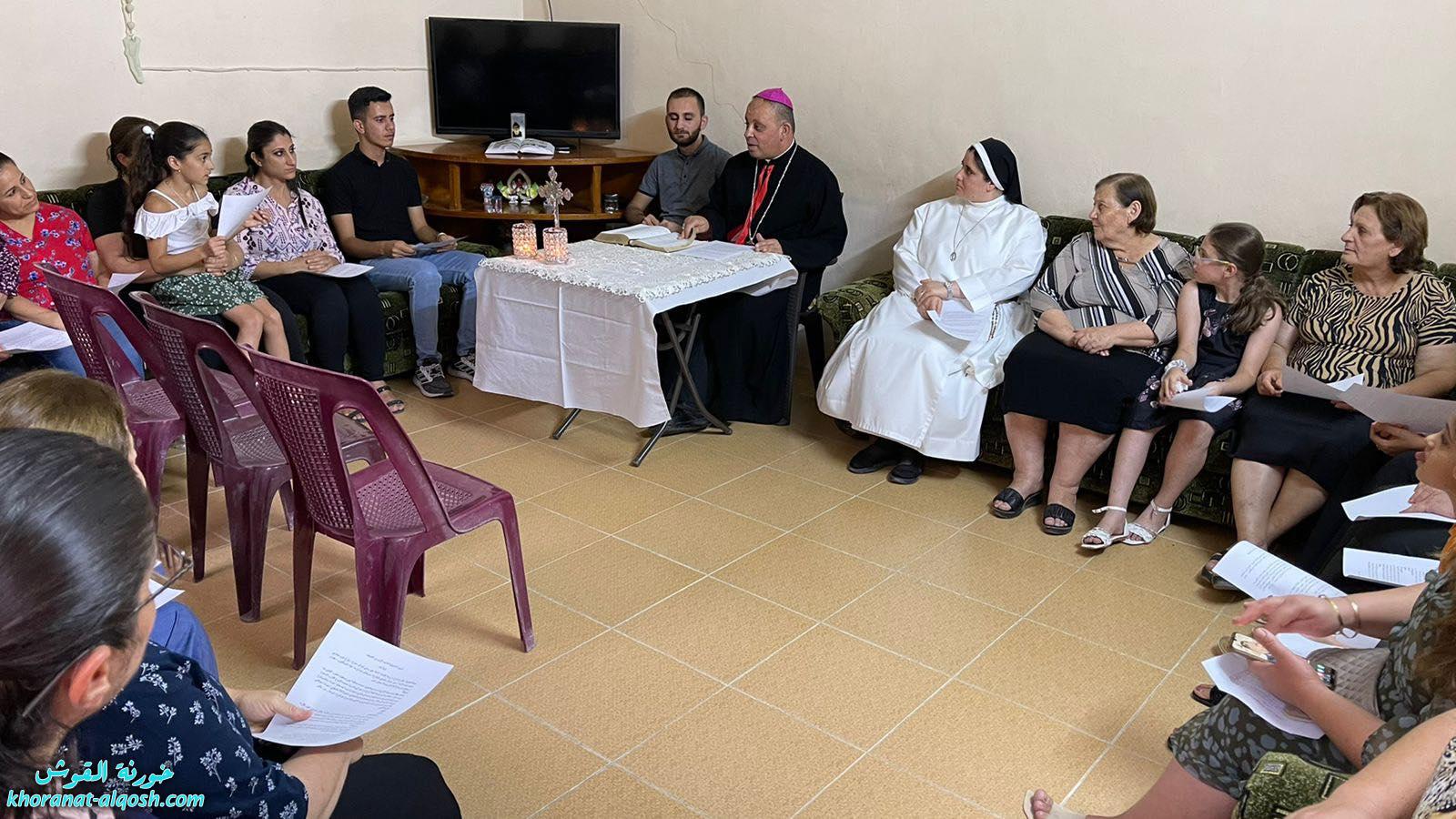في سلسلة السهرات الانجيلية اقام سيادة المطران مار بولس ثابت المعاون الاسقفي لأبرشية القوش الكلدانية، لقاء قراءة الانجيل ” القراءة الربية” وذلك عصر اليوم الاثنين 25 تموز 2022 حيث تم قراءة وتقديم شرح تأملي وصلاة لنص انجيل لوقا 14 : 1-15 من تواضع ارتفع – قبول نعمة الخلاص بتواضع يعني نيله، مع مجموعة من عوائل القوش في بيت عائلة استضافت اللقاء.