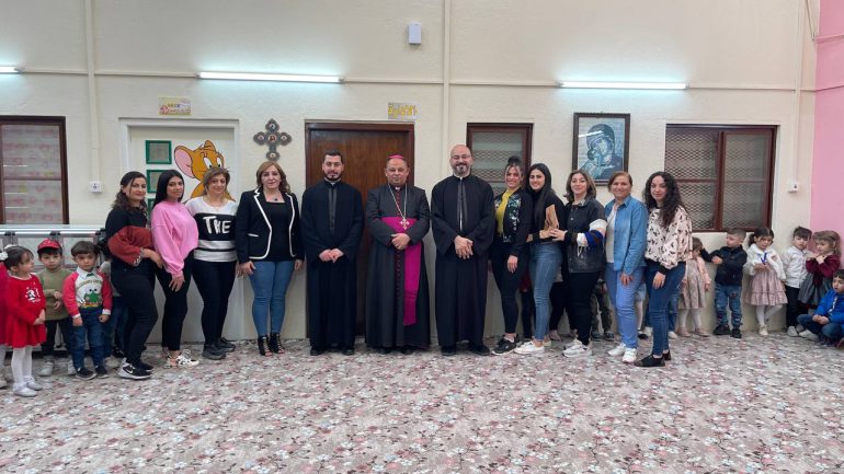 ضمن النشاطات الرعوية، زار راعي ابرشية القوش سيادة المطران مار بولس ثابت يرافقة الاباء الكهنة الاب د. سلار بوداغ خوري كنيسة القوش والاب رودي الصفار صباح يوم الخميس الموافق 10 تشرين الثاني 2022 روضة بيت الملائكة للطفولة و روضة القوش الحكومية، بمناسبة بدء العام الدراسي الجديد 2022-2023 التقوا خلالها بالكادر التعليمي وأطلعوا على بيئة الروضة والانشطة التي تقدم اليهم واستمعوا الى المعوقات التي تواجههم وكيفية تذليلها، مؤكدين دعم الكنيسة لهم وشاكرين جهودهم المبذولة في تنشئة الاطفال.