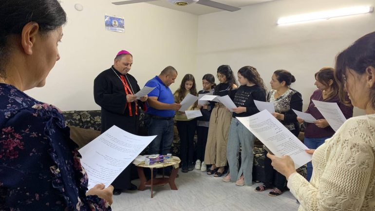 في سلسلة السهرات الانجيلية المستمرة، من قبل سيادة المطران مار بولس ثابت راعي أبرشية القوش الكلدانية، أقيم لقاء قراءة الانجيل ” القراءة الربية” وذلك عصر اليوم الخميس 10 تشرين الثاني 2022 حيث تم قراءة وتقديم شرح تأملي وصلاة لنص انجيل متى 12: 1-8، مع مجموعة من عوائل القوش في بيت عائلة استضافت اللقاء.