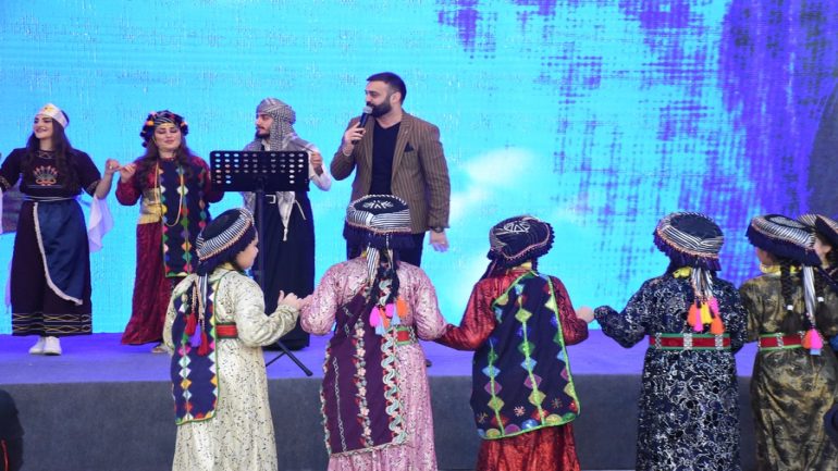 ثم قدّمت مجموعة من فتيات مدرسة ألقوش الابتدائية للبنات، وهن يرتدين الملابس الفلكلورية التراثية الألقوشية، أنشودة باللغة السريانية، تلتها لوحة متميزة لأطفال التعليم المسيحي بألقوش، أعقبتها لوحة راقصة لفرقة برمايا القادمة من بيت زالين/ القامشلي بسوريا.