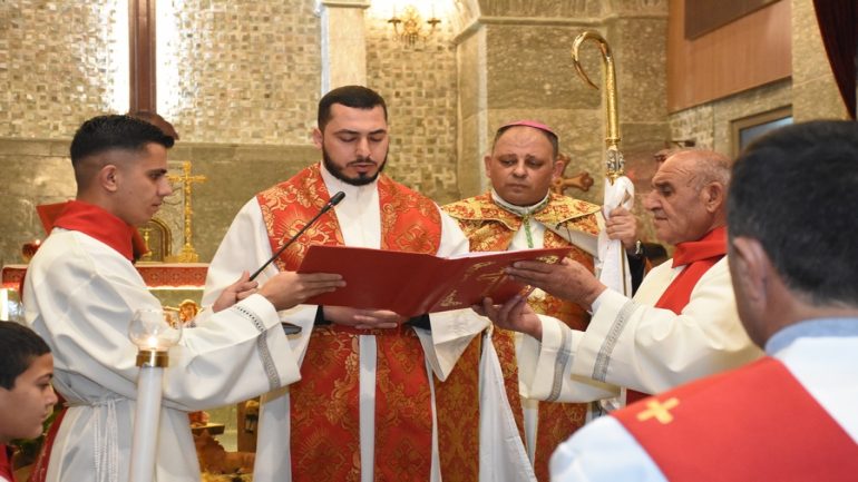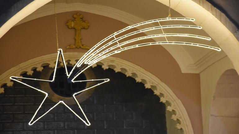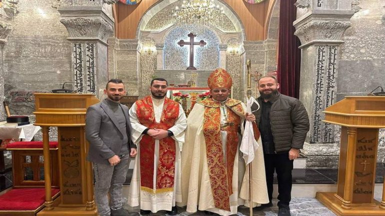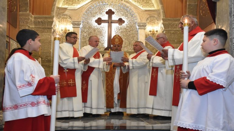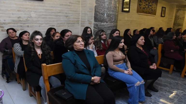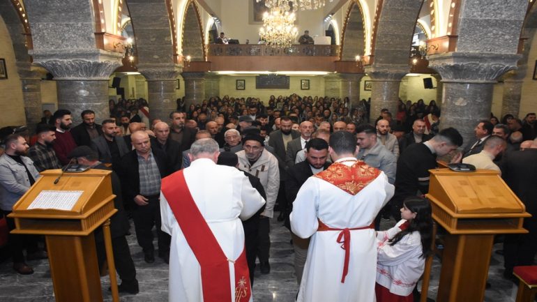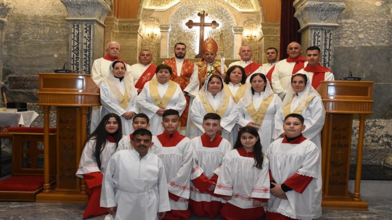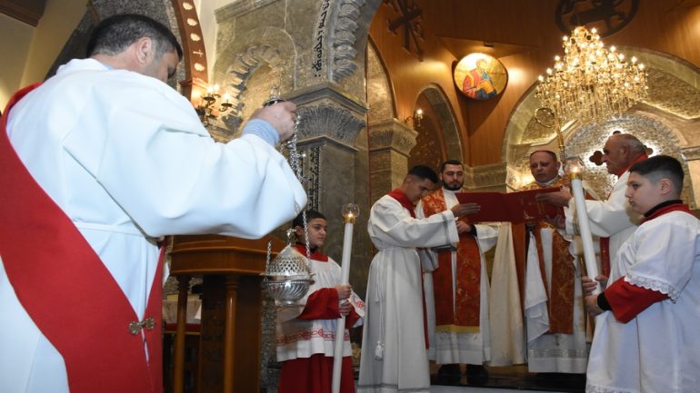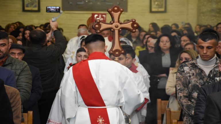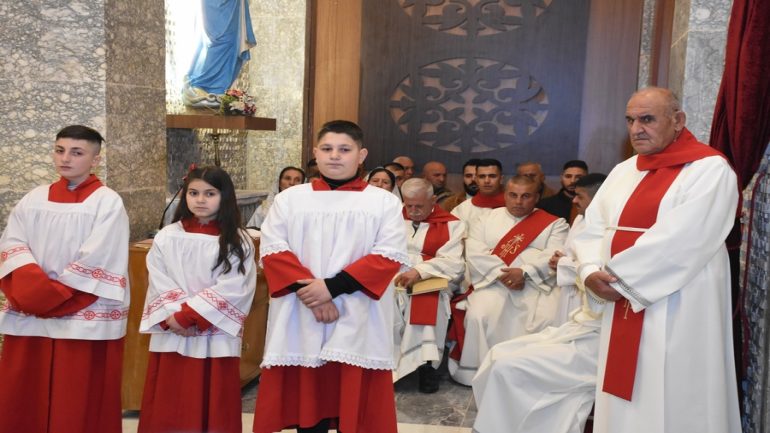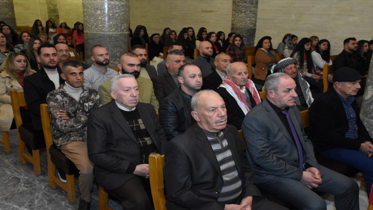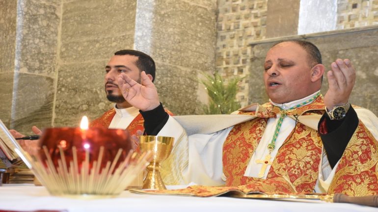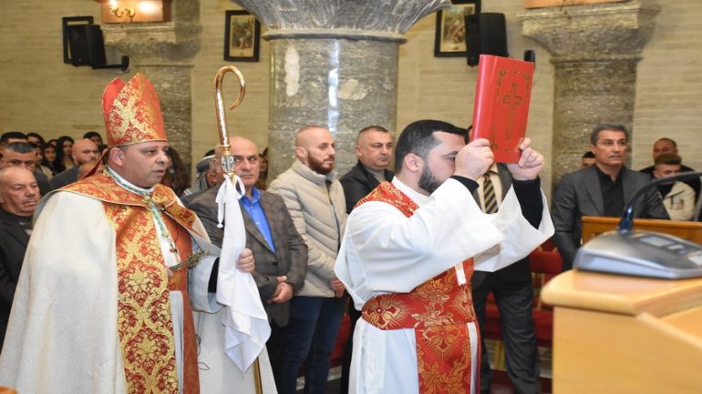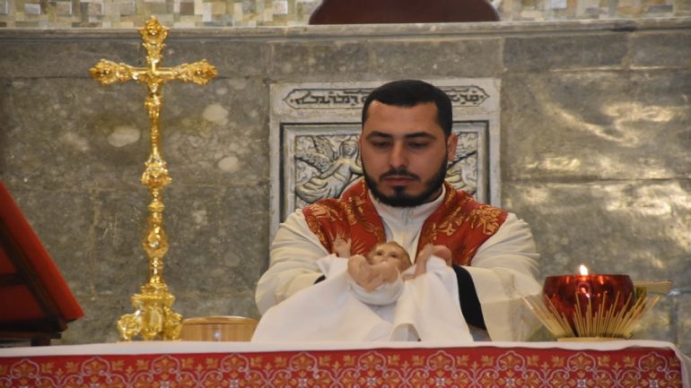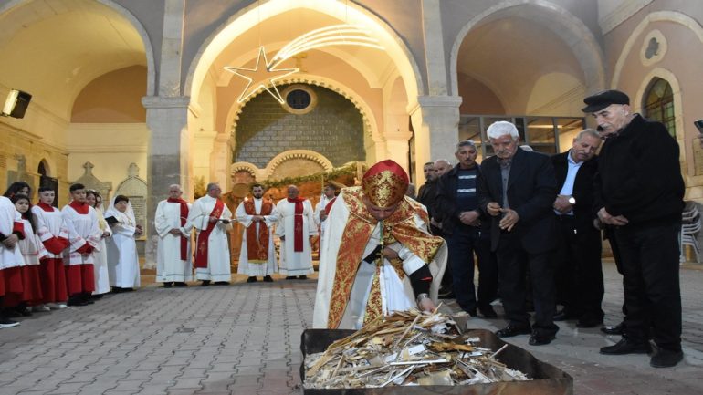عشية ليلة الميلاد، السبت 24 كانون الاول 2022، وعند الساعة السابعة مساءً بدأت الصلاة الطقسية، تلاها القداس الإلهي الذي تراسه سيادة المطران مار بولس ثابت راعي ابرشية القوش الكلدانية يعاونه الاب رودي الصفار وبمشاركة الشمامسة وجوق الكنيسة، ليدخل الناس الى العالم الالهي ليرفعهم نحو الاعالي في اجواء الكنيسة السماوية فيشاركوا في هذا الوقت بالتسبيح للطفل المولود مع امه مريم.