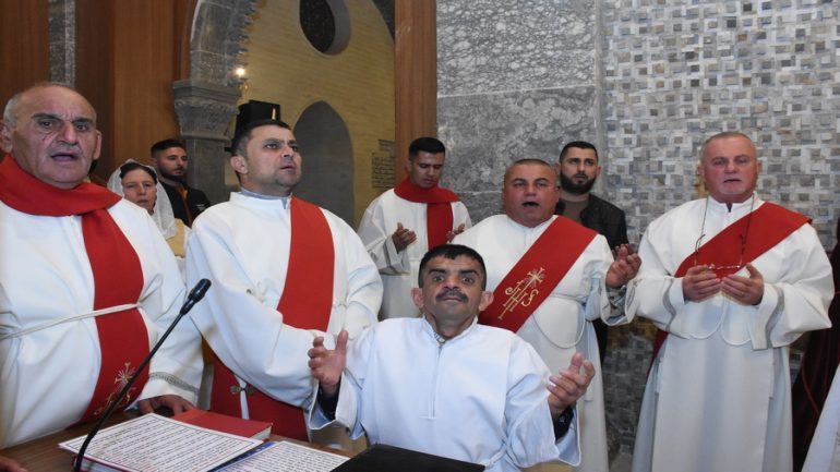 كالمعتاد علت اصوات النواقيس لتغلب اصوات الضجيج وتبرز وكأنها تتوحد مع أصوات الملائكة التي اعلنت ولادة ملك الملوك يسوع المسيح قائلة (المجد لله في العلى وعلى الارض السلام وفي الناس المسرة) هكذا بدأت كنيسة مار كوركيس ببلدة القوش في سهل نينوى طقسها ورتبها المقدسة الخاص بهذا اليوم العظيم يوم حلول الرب بيننا بفعل عجيب متواضع ليتخذ شكل الانسان ليوصل رسالته للانسان بانه معه الى انقضاء الدهر.