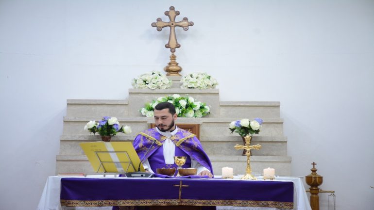 حيث دقت اجراس كنيسة مار كوركيس لبدء صلاة الصوم عند الساعة التاسعة صباحاً ثم القداس في الساعة الحادية عشر صباحاً ترأسه سيادة المطران بولس ثابت راعي ابرشية القوش الكلدانية بمشاركة الشمامسة والمؤمنين.