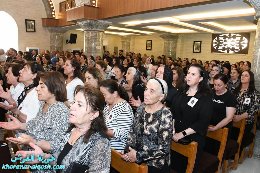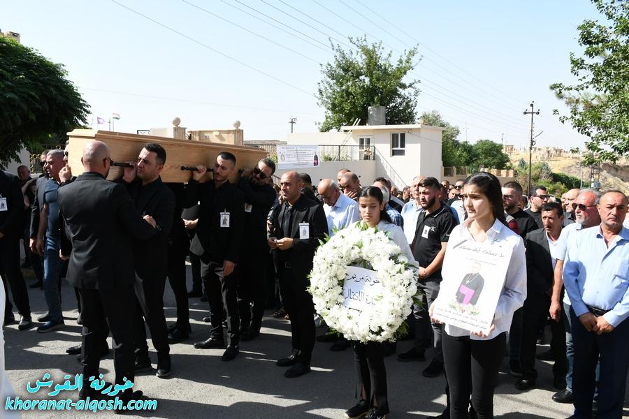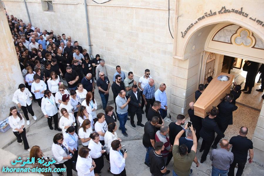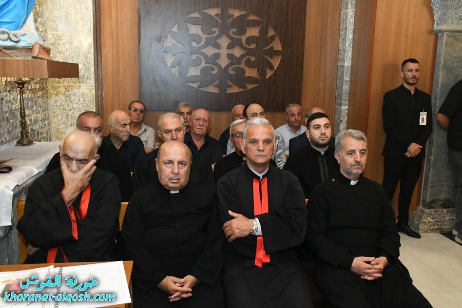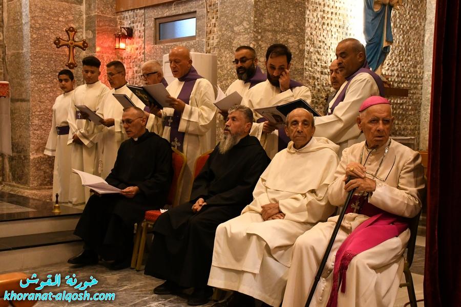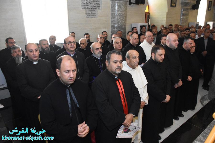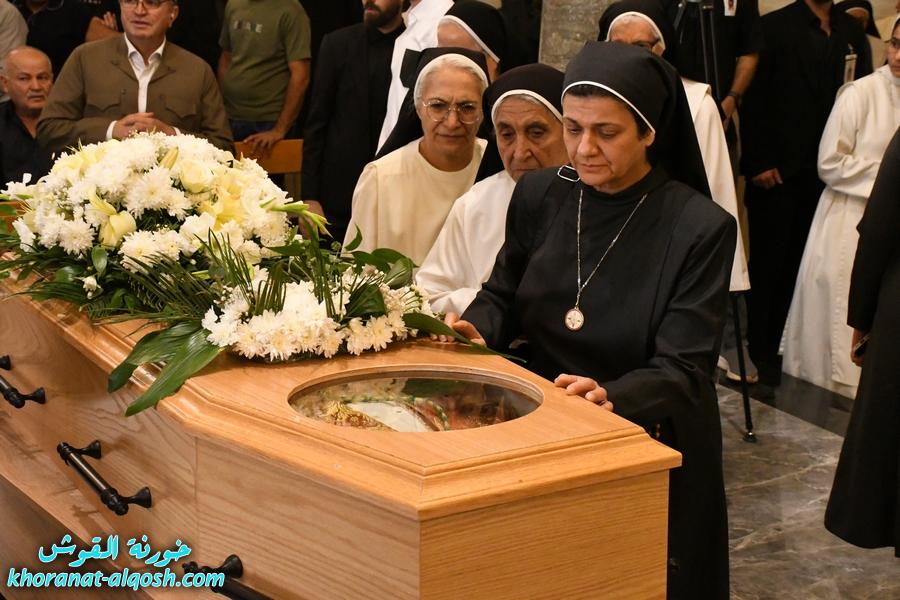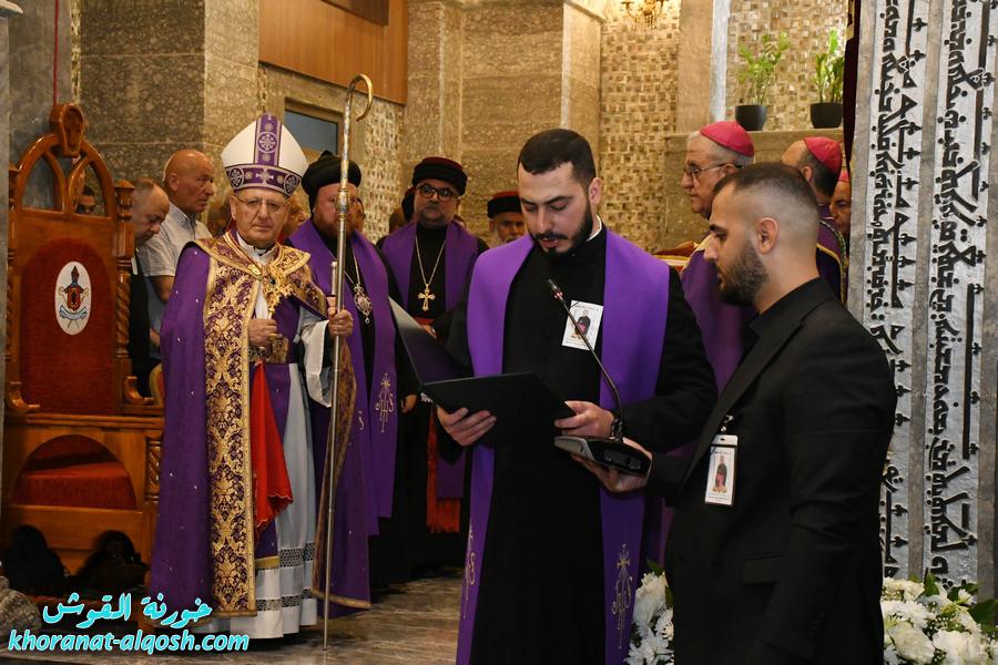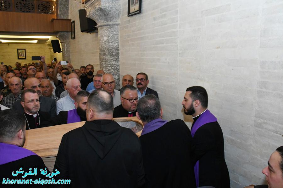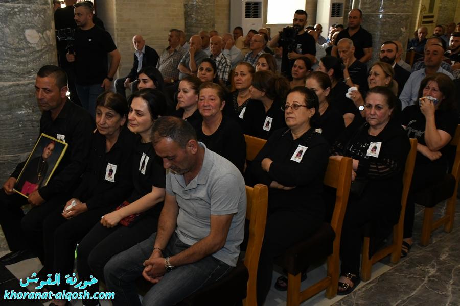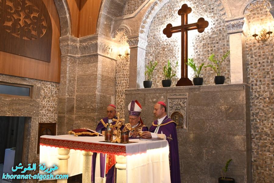 وسط التراتيل والصلوات، حمل الكهنة والمؤمنون الجثمان على الأكتاف في مشهد روحاني مؤثر، استعدادًا لرتبة صلاة الجنازة، التي أُقيمت داخل الكنيسة لألقاء النظرة الاخيرة، ثم ترأس غبطة البطريرك الكاردينال لويس روفائيل ساكو القداس الإلهي وصلاة الجناز، بمشاركة عدد من أصحاب السيادة المطارنة من الكنيسة الكلدانية، وكنائس المشرق الشقيقة، إلى جانب كوكبة من الآباء الكهنة، ومسؤولين سياسيين وحكوميين، ورؤساء أحزاب، وجمهور غفير من أبناء الشعب.