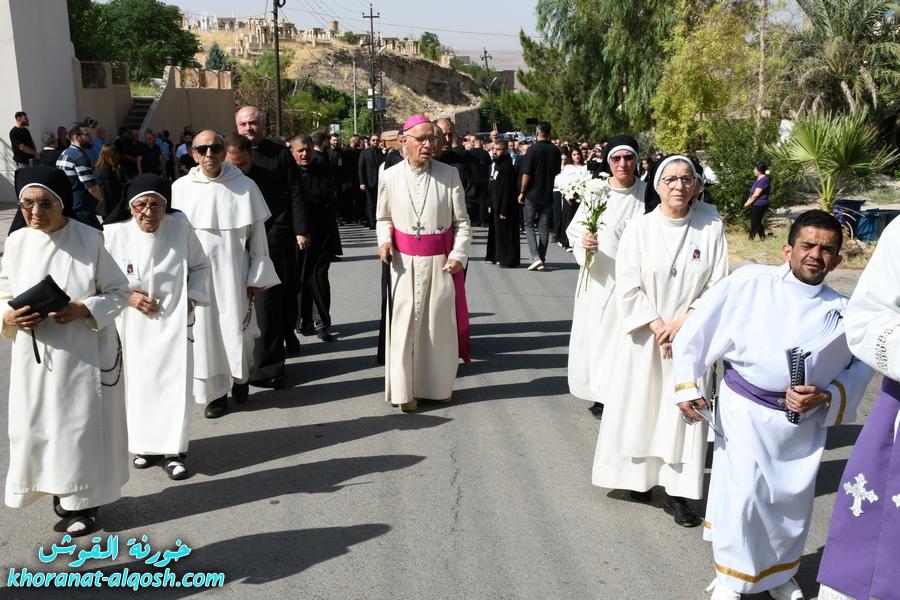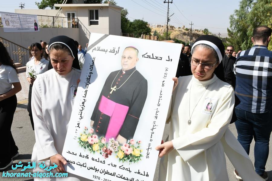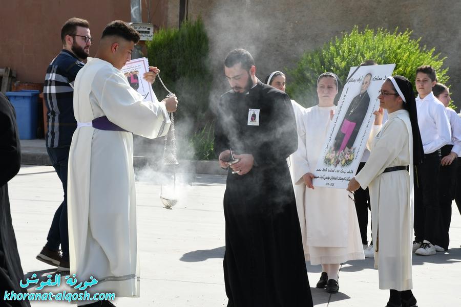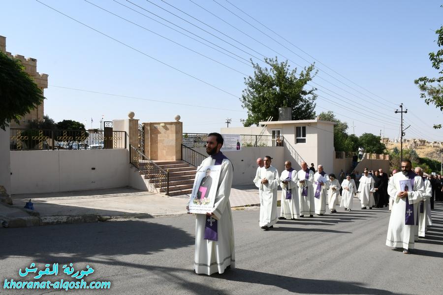 انطلقت المراسيم عند الساعة الثامنة صباحًا، حيث تجمع أهالي القوش في مفرق البلدة لأستقبال جثمان المطران الراحل، الذي نُقل إلى دار المطرانية وسط موكب مهيب، ومن هناك إلى كنيسة مار كوركيس، حيث كان في استقباله المئات من أبناء الأبرشية، بالإضافة إلى وفود كنسية و رسمية، من رجال دين ورهبان وراهبات، وشخصيات دينية ومدنية، وعدد كبير من المؤمنين من القوش والبلدات المجاورة.
