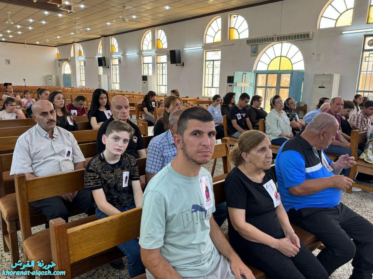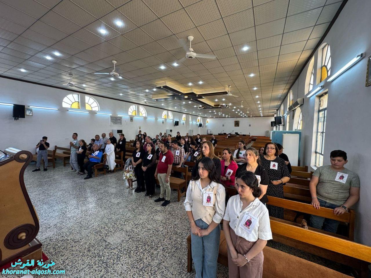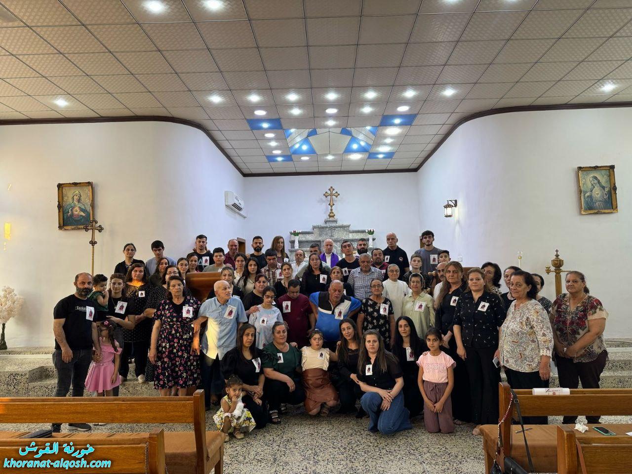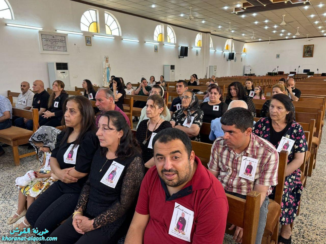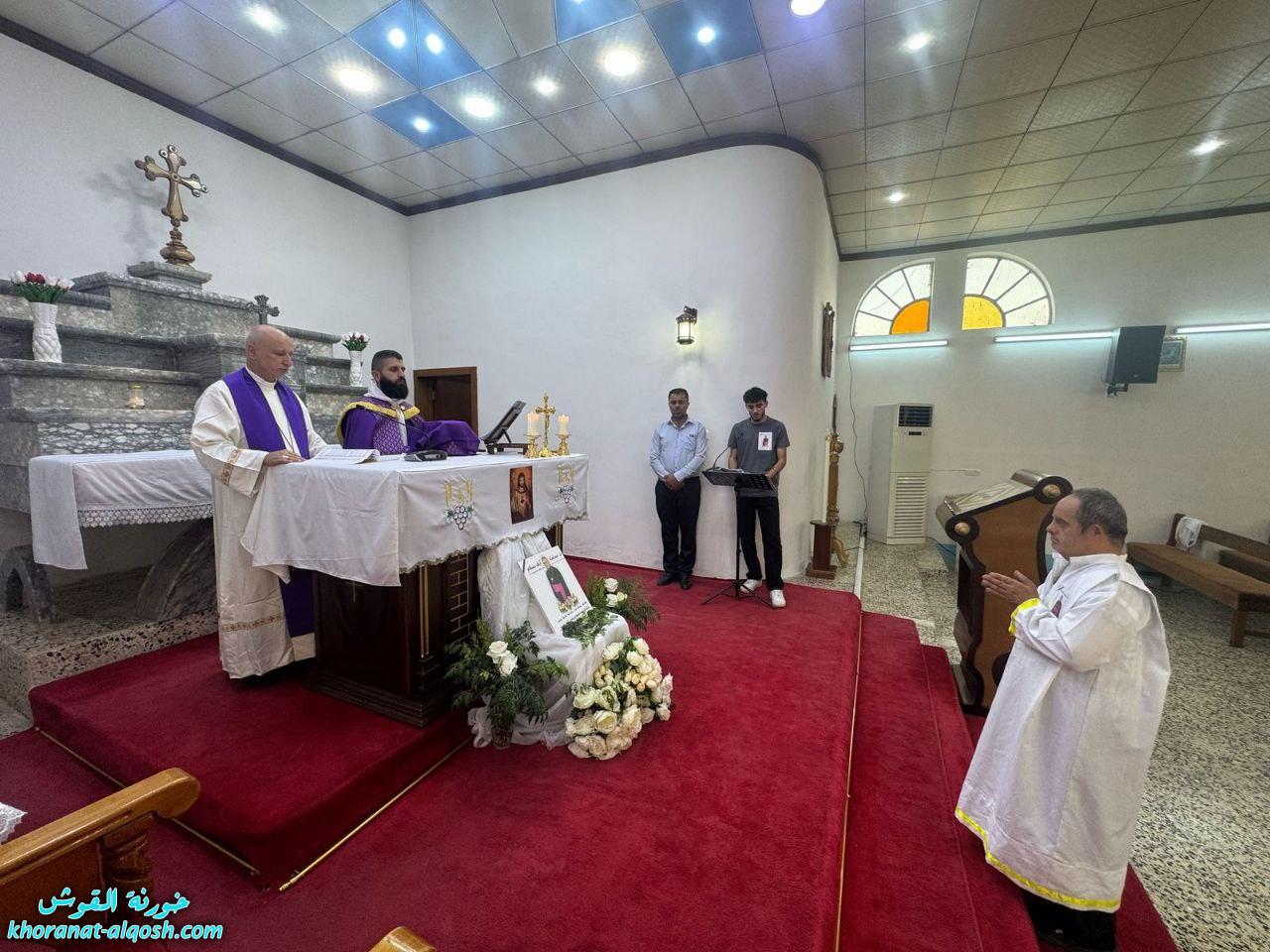 ترأس القداس الأب سليمان حنا كاهن كنيسة القوش، بمشاركة الأب مازن متوكا، المرشد الروحي لإقليم المنطقة الشمالية لجماعة المحبة والفرح. وحضر القداس عدد من جماعات الأخوة، منها: أخوة يسوع الطفل من بغديدا، وأخوة الملائكة من تللسقف، وأخوة مار قرياقوس من طنايا، وأخوة مار يوسف من تلكيف، بالإضافة إلى عدد من المسؤولين والكوادر، من بينهم بلسم توما، الأخت إلهام الدومينيكية، وسفيان عدنان.