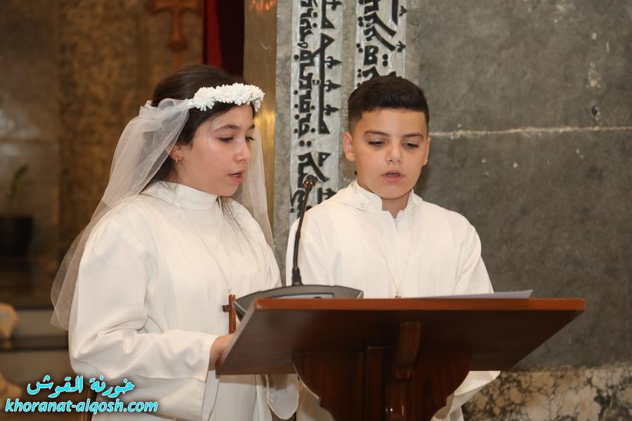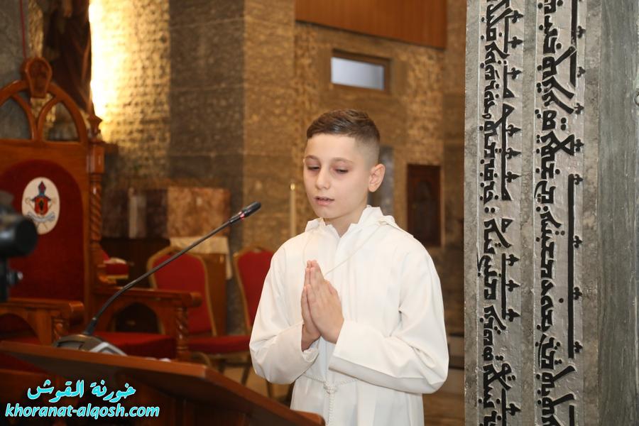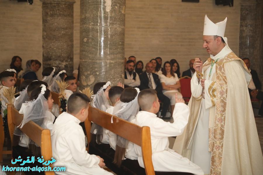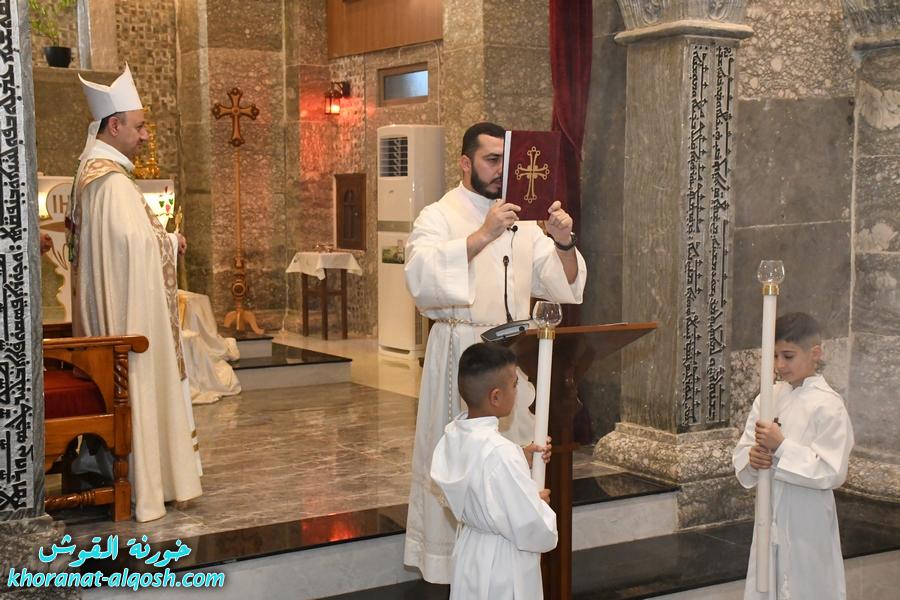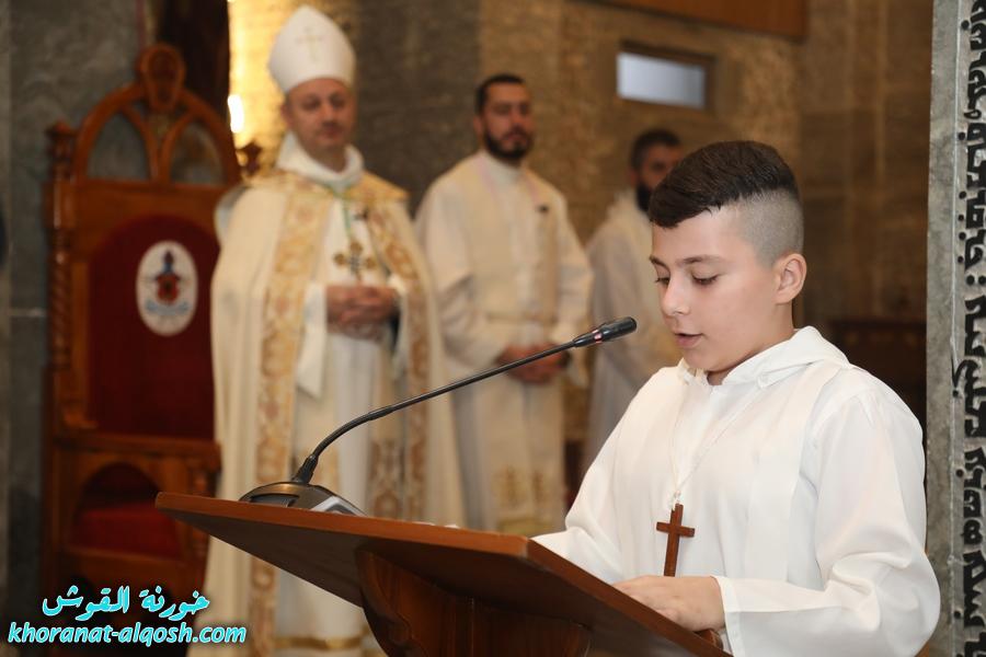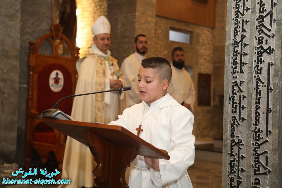 ترأس الذبيحة الإلهية سيادة المطران فيليكس الشابي المدبر البطريركي لأبرشية القوش الكلدانية، بمشاركة الأب رودي الصفار خوري الكنيسة والأب سليمان حنا كاهن القوش، وبحضور المطران ميخا مقدسي واهالي المتناولين والأخوات الراهبات.
