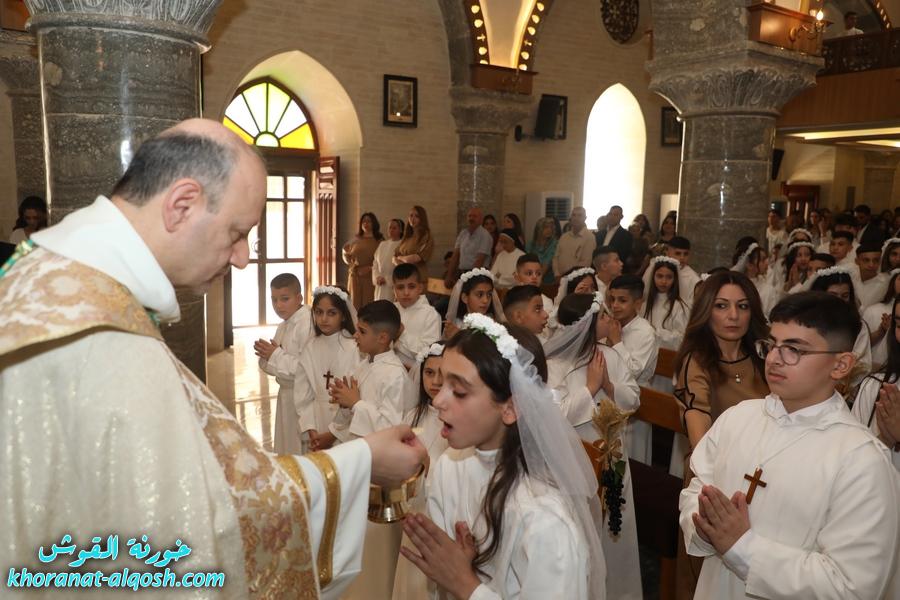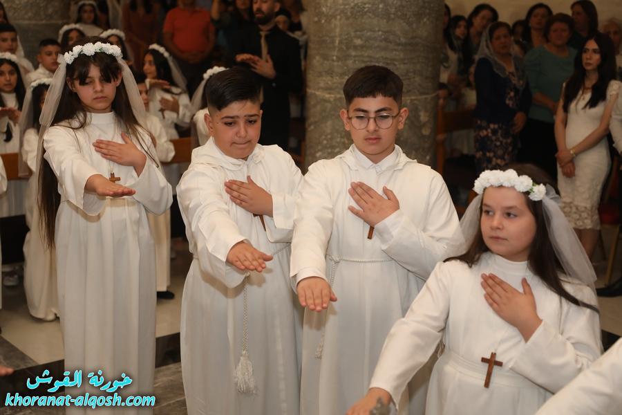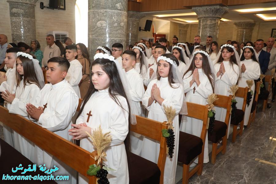 أقامت كنيسة القوش في سهل نينوى صباح يوم الجمعة 22 آب 2025، احتفالاً مهيباً بمراسيم التناول الأول، حيث نال 69 تلميذاً وتلميذة سرّ القربان المقدس، وذلك في كاتدرائية كنيسة مار كوركيس بعد مسيرة شهرين من التعليم المسيحي والتدريب على الألحان الطقسية وممارسة القداس الإلهي.