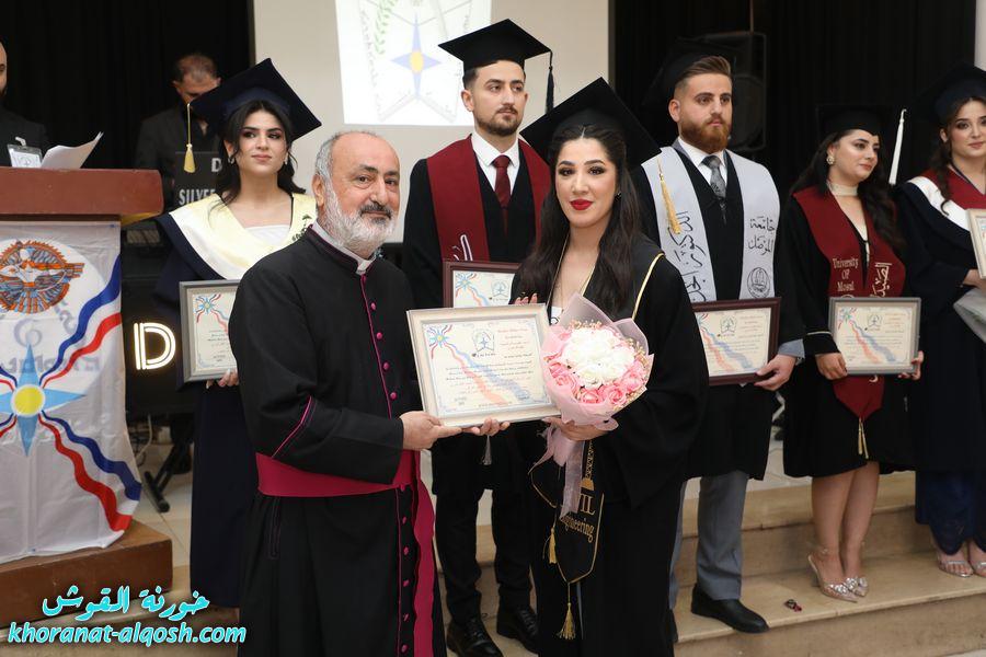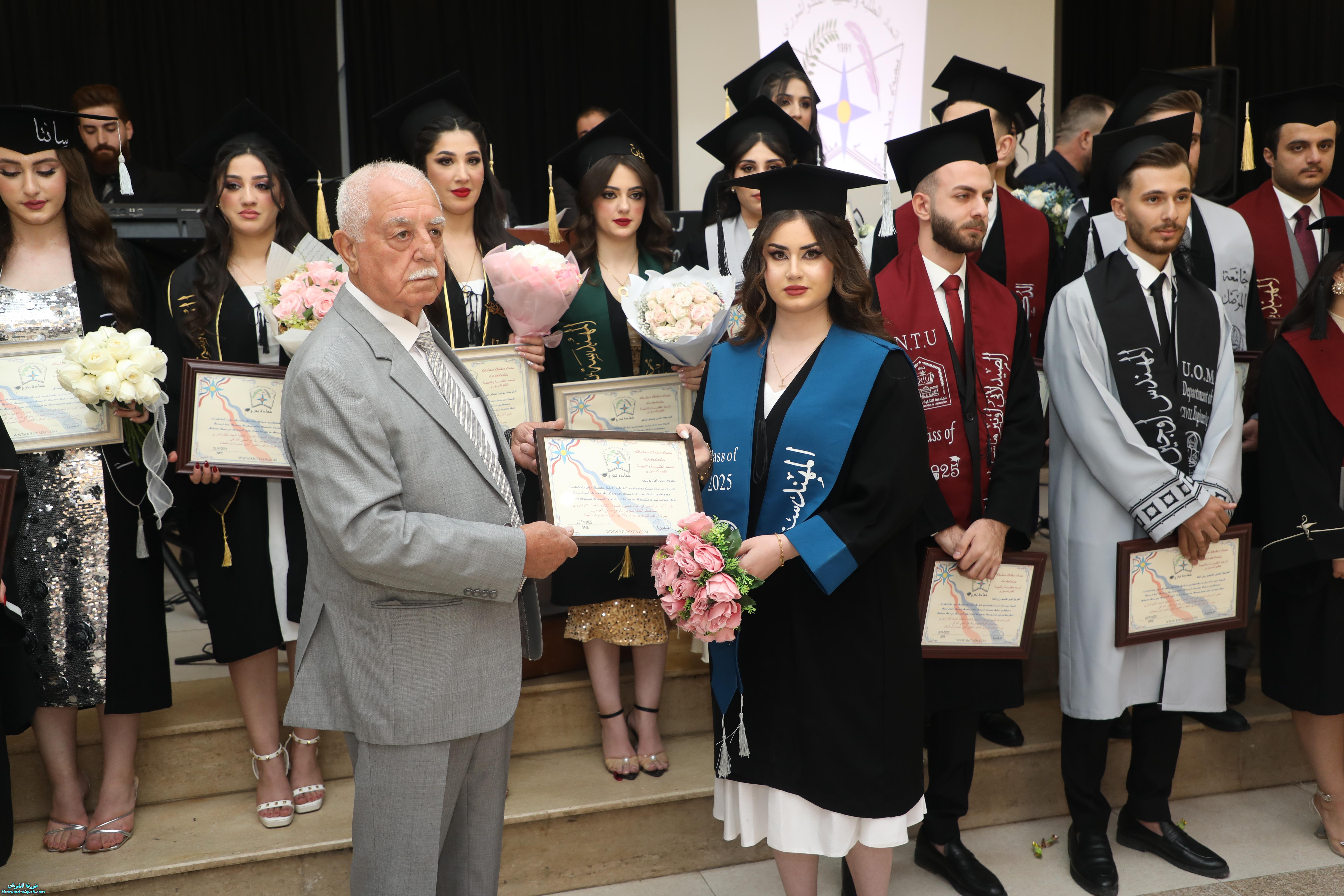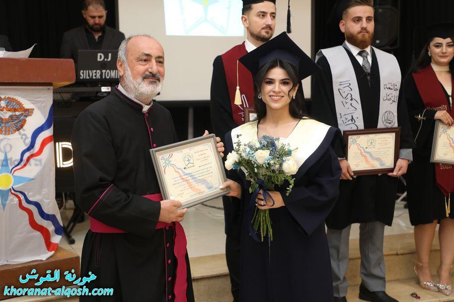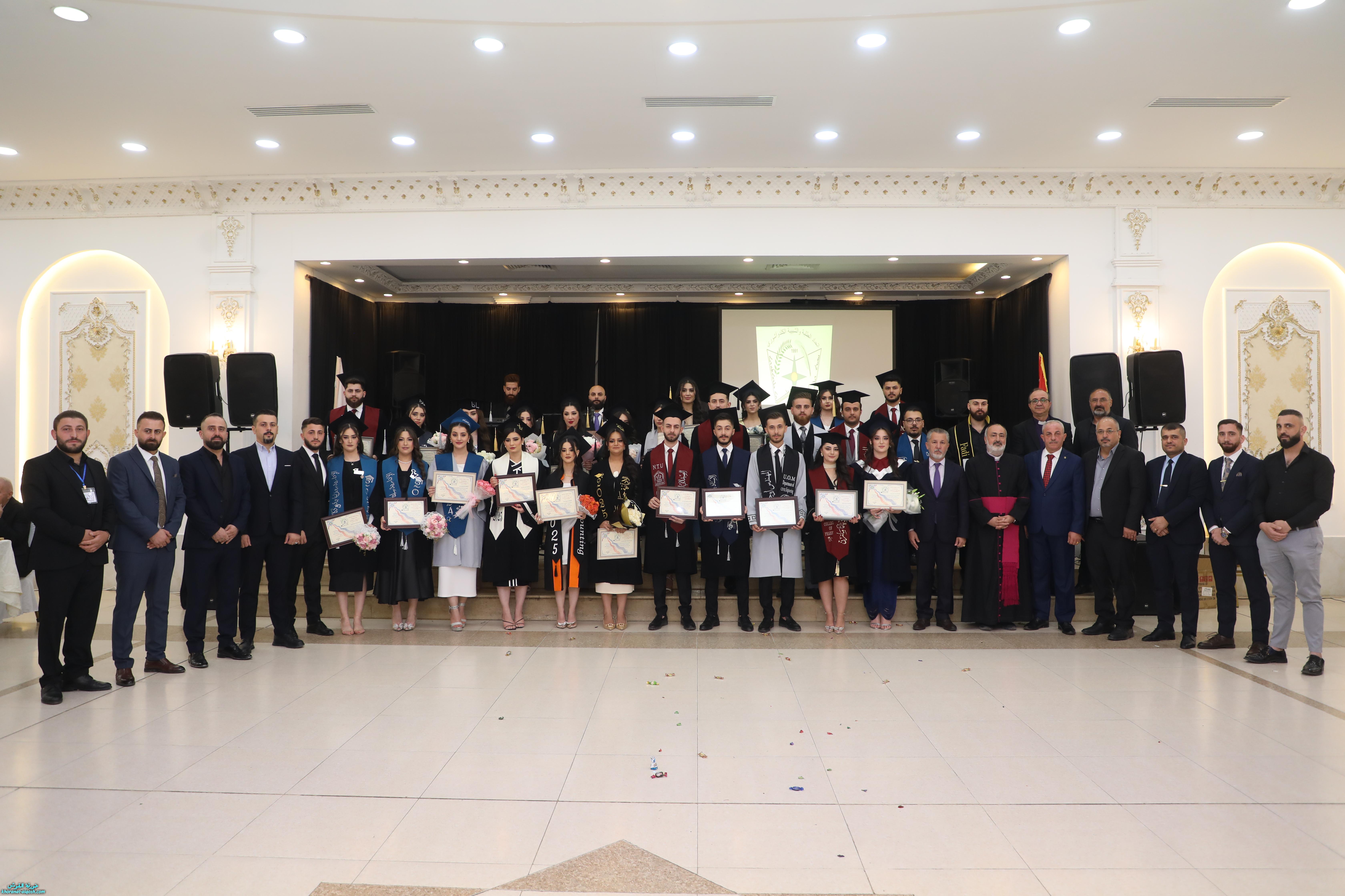 تخلل الحفل توزيع شهادات الاتحاد التذكارية على الخريجين، ثم جرى تقطيع كعكة التخرج وسط أجواء من الفرح. وحضر الاحتفال الأب أسعد حنونا، إلى جانب ممثلين عن منظمات ومؤسسات المجتمع المدني، وجمع من أهالي الخريجين وأبناء شعبنا الذين شاركوا أبناءهم فرحة هذا اليوم المميز