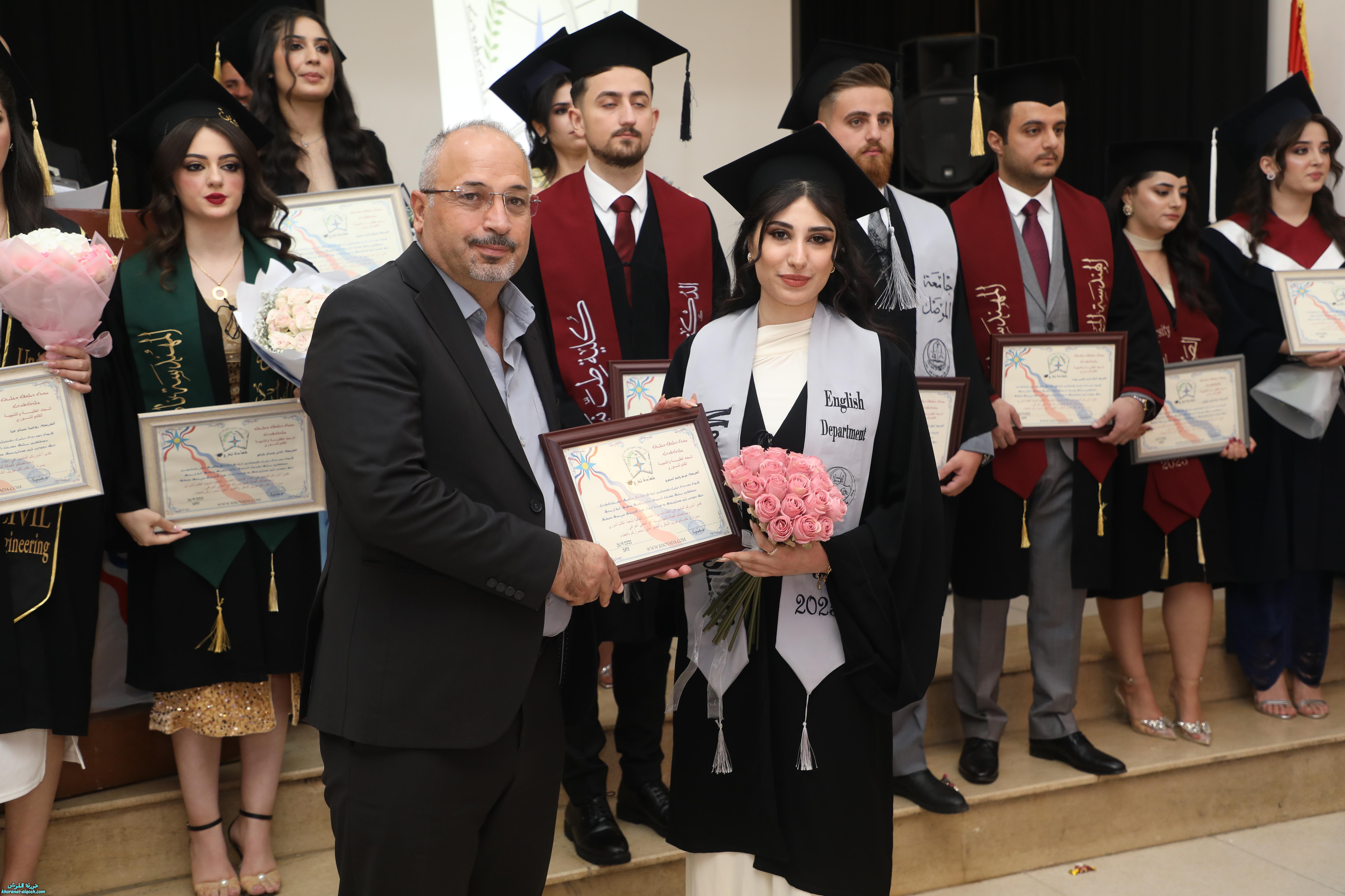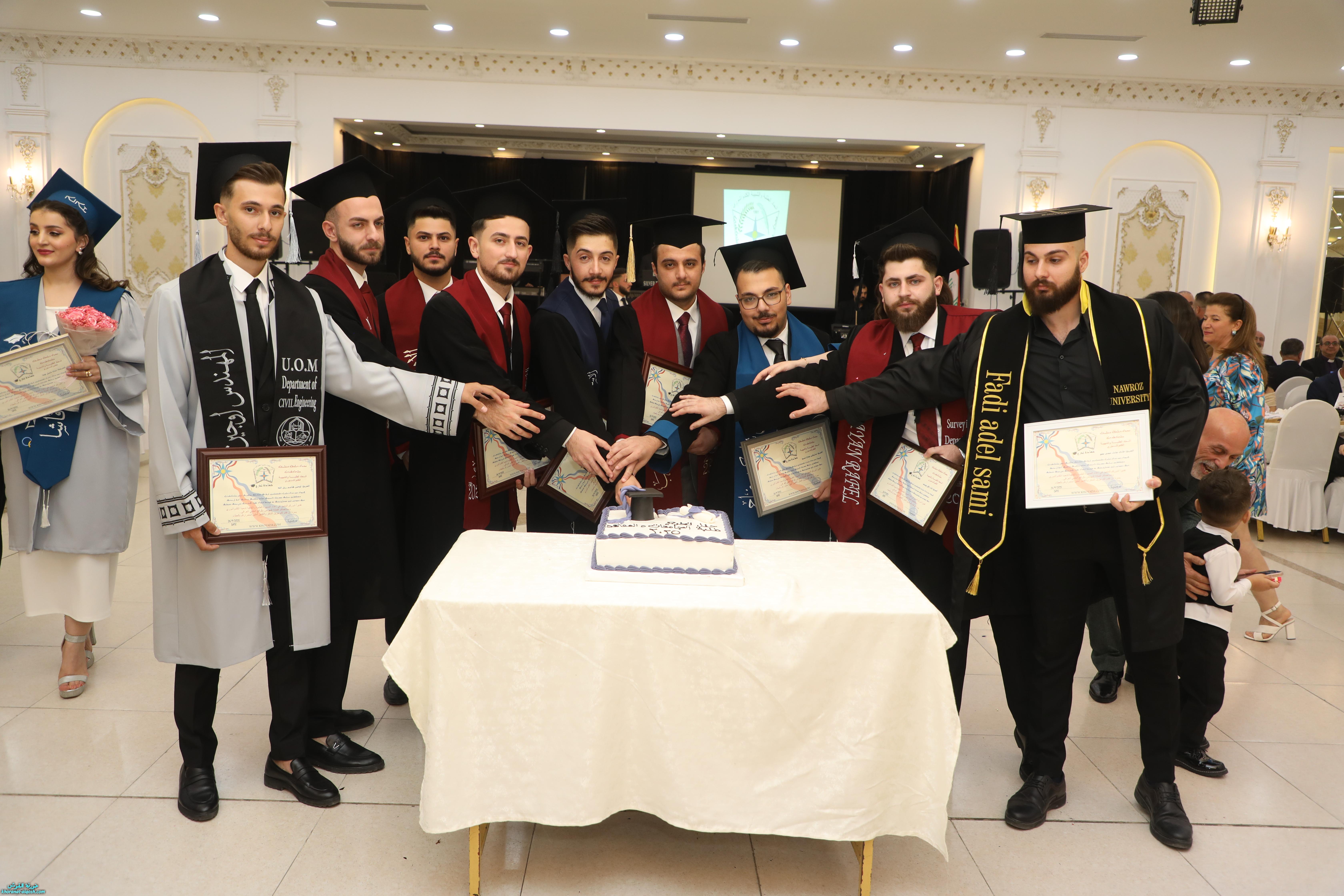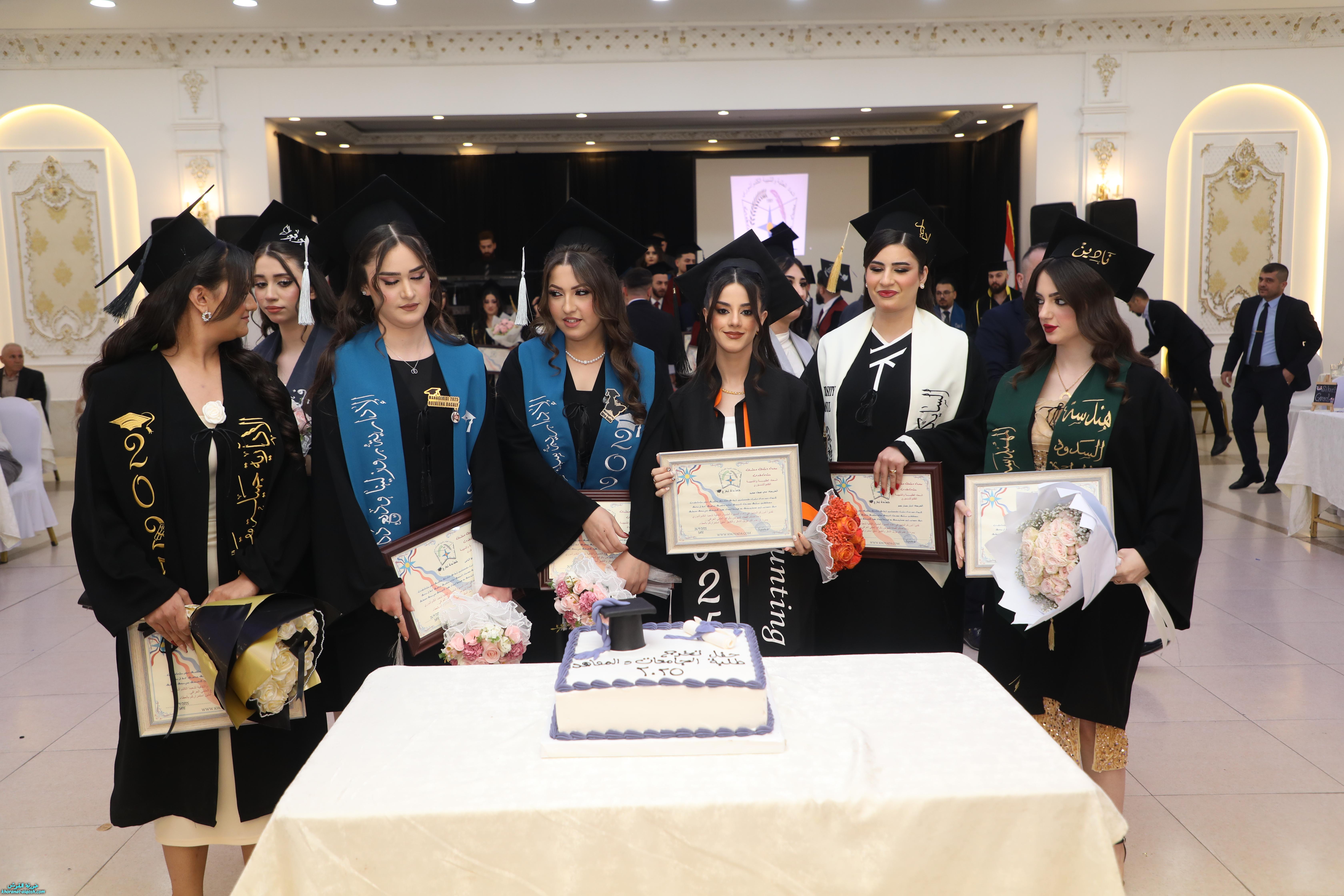 تخلل الحفل توزيع شهادات الاتحاد التذكارية على الخريجين، ثم جرى تقطيع كعكة التخرج وسط أجواء من الفرح. وحضر الاحتفال الأب أسعد حنونا، إلى جانب ممثلين عن منظمات ومؤسسات المجتمع المدني، وجمع من أهالي الخريجين وأبناء شعبنا الذين شاركوا أبناءهم فرحة هذا اليوم المميز