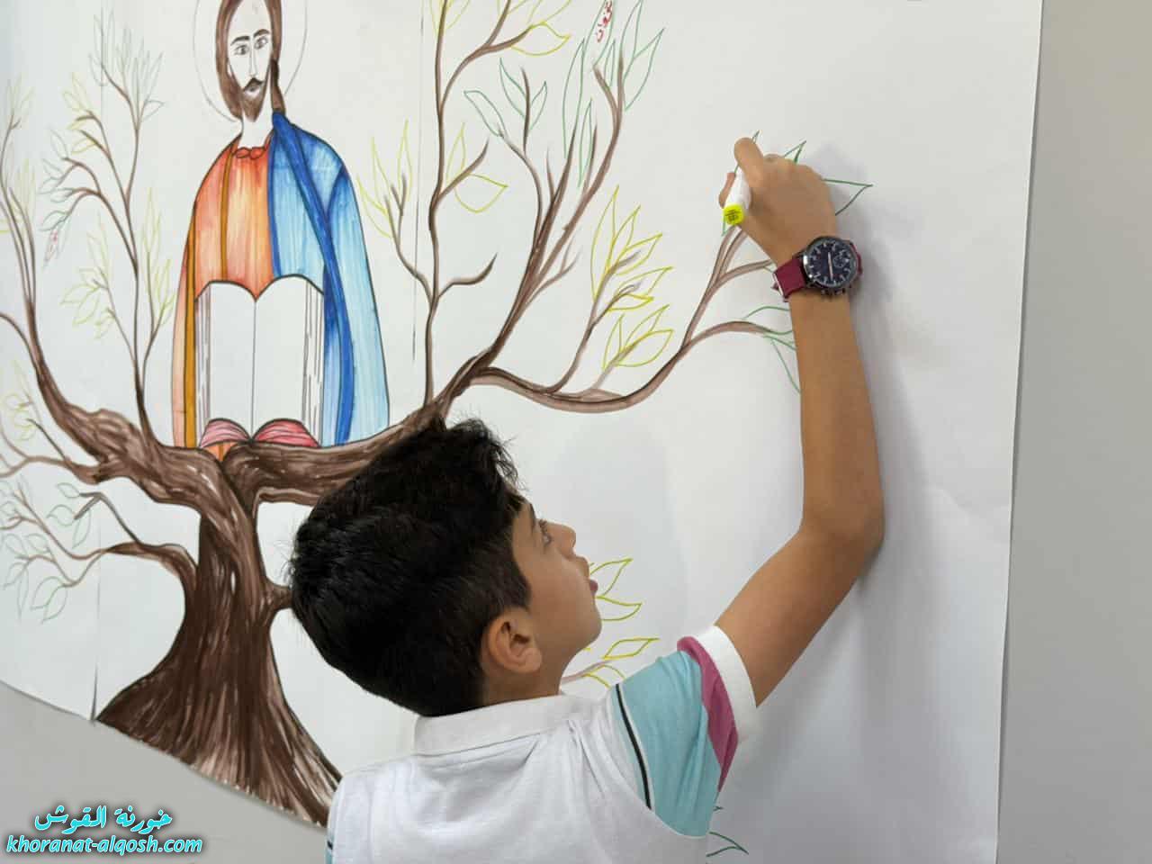 ابتدأ اللقاء بالصلاة، ثم قام كل تلميذ بتثبيت اسمه على ورقة الشجرة، في رمزٍ جميل لانتمائه إلى المسيح وثباته في كرم الرب.