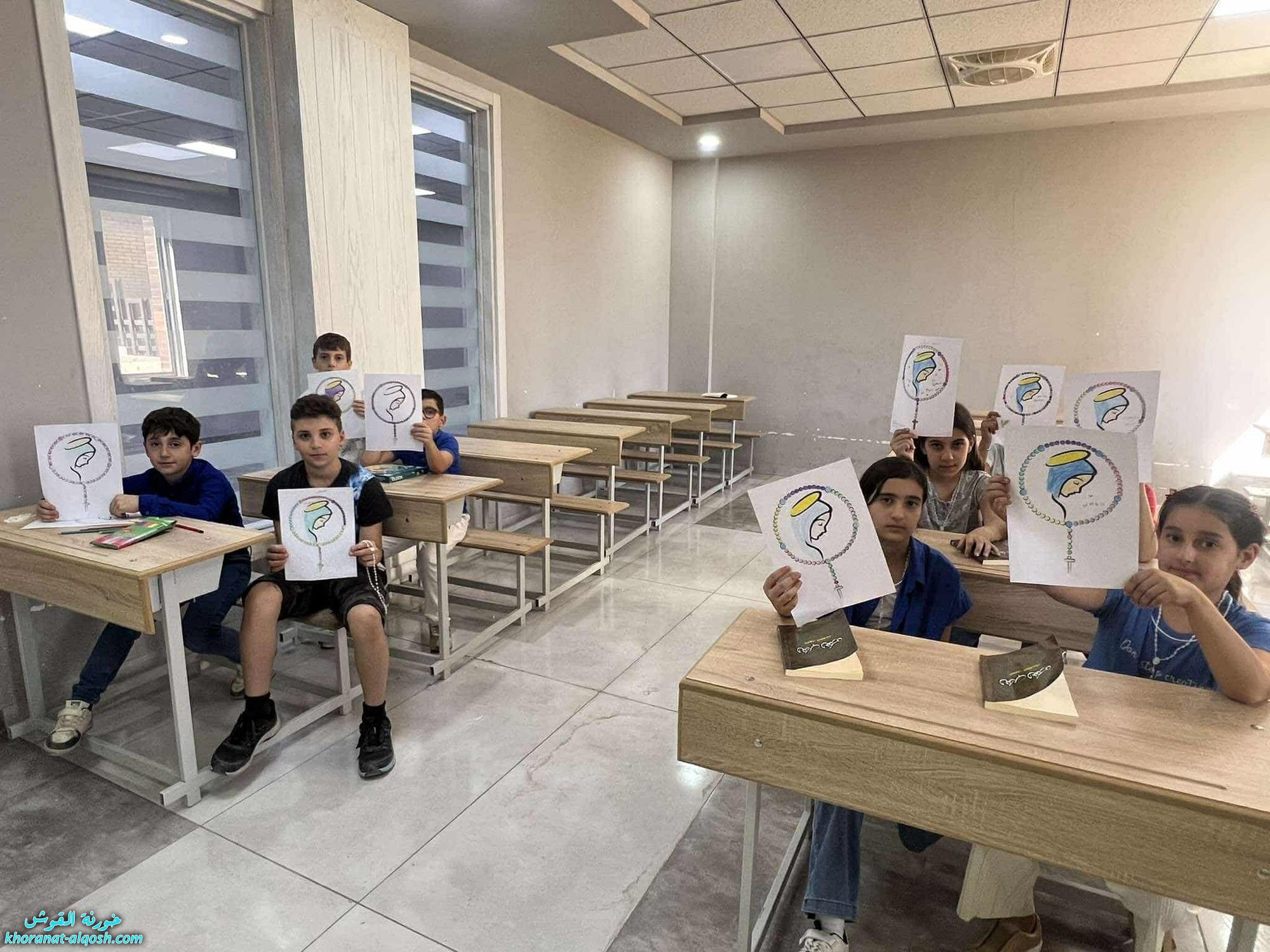 بعدها، توجّه التلاميذ إلى الصفوف لإكمال الشرح والتأمل، وفي الختام قاموا بصنع مسابحهم وتلوينها بألوانٍ تعبّر عن فرحهم ومحبتهم لمريم العذراء.