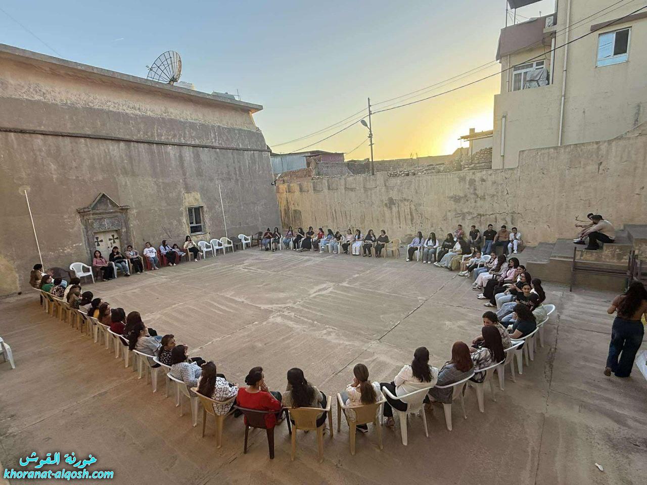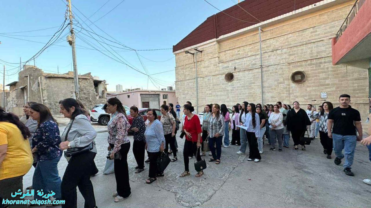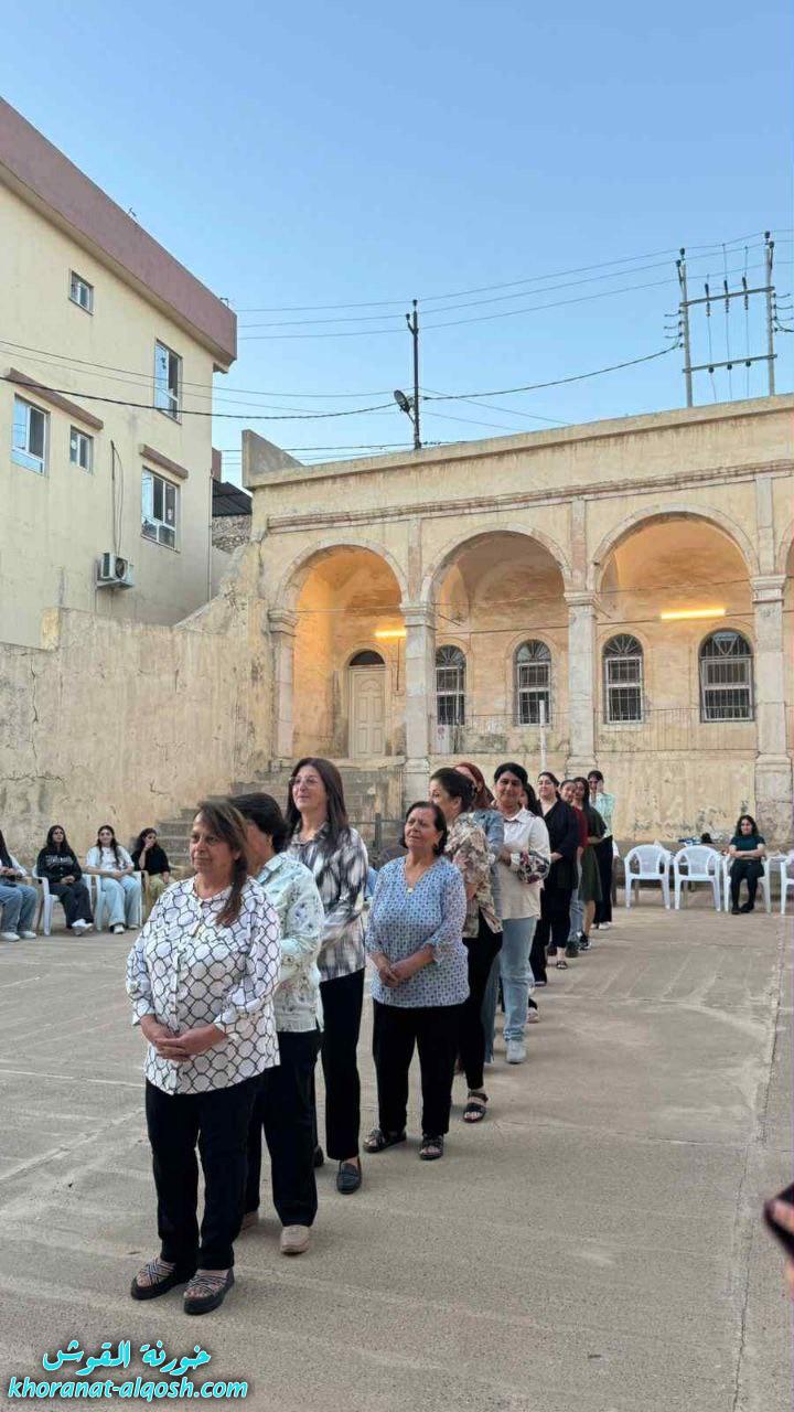 بدأ اللقاء بصلاة مسبحة الوردية في كنيسة مار كوركيس، رُفعت خلالها الطلبات والتأملات المريمية بإيمانٍ عميق، تلتها زياحة إلى ساحة كنيسة مار ميخا وسط أجواءٍ من الخشوع والترتيل.
