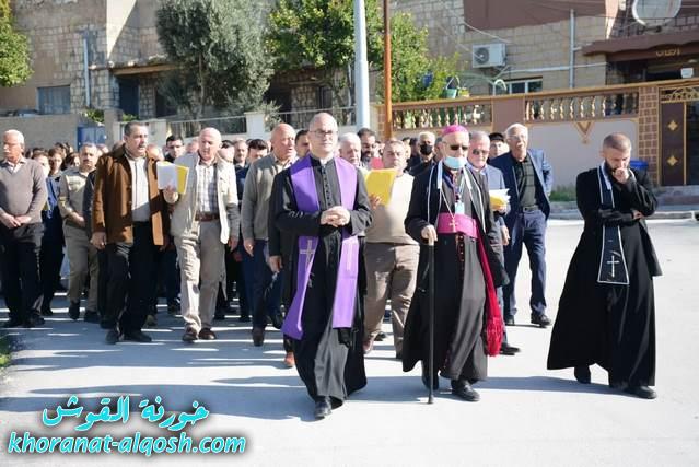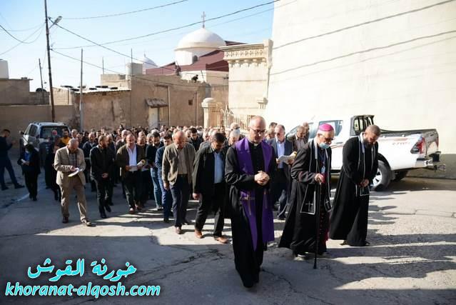 بمناسبة جمعة الموتى المؤمنين، اقيم صباح يوم الجمعة 12 شباط 2021 قداساً في كنيسة مار كوركيس ومار قرداغ في تمام الساعة السابعة صباحاً، تلتها الصلاة على روح الموتى المؤمنين عند الساعة التاسعة والنصف، حيث قرأ الشمامسة والشماسات القراءات الطقسية الخاصة بالمناسبة وقراءة الانجيل المقدس، ثم بدء الزوياح من كنيسة مار كوركيس وصولاً لمقبرة الاجداد يتقدمه الصليب المقدس وبمشاركة سيادة المطران مار ميخائيل مقدسي راعي ابرشية القوش الكلدانية والاب د.سلار بوداغ خوري الكنيسة والاب توما ايليا والشمامسة والشماسات وجمع غفير من المؤمنين من اهالي القوش.