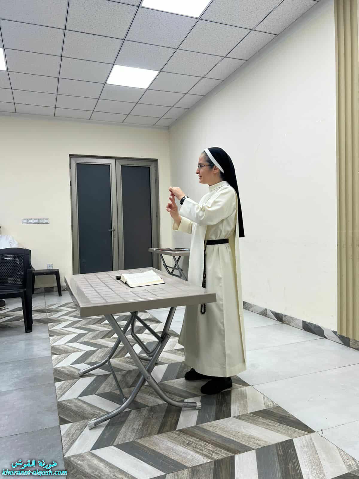 أدارت المقاسمة الأخت فرح يوسف من الراهبات الكلدانيات، وركزت في تأملها على شخصيتي مريم ومرتا في النص الإنجيلي وكيف يمكن تطبيق موقفيهما في حياتنا اليومية من خلال التوازن بين العمل والخدمة من جهة، والتأمل والإصغاء لكلمة الرب من جهة أخرى.