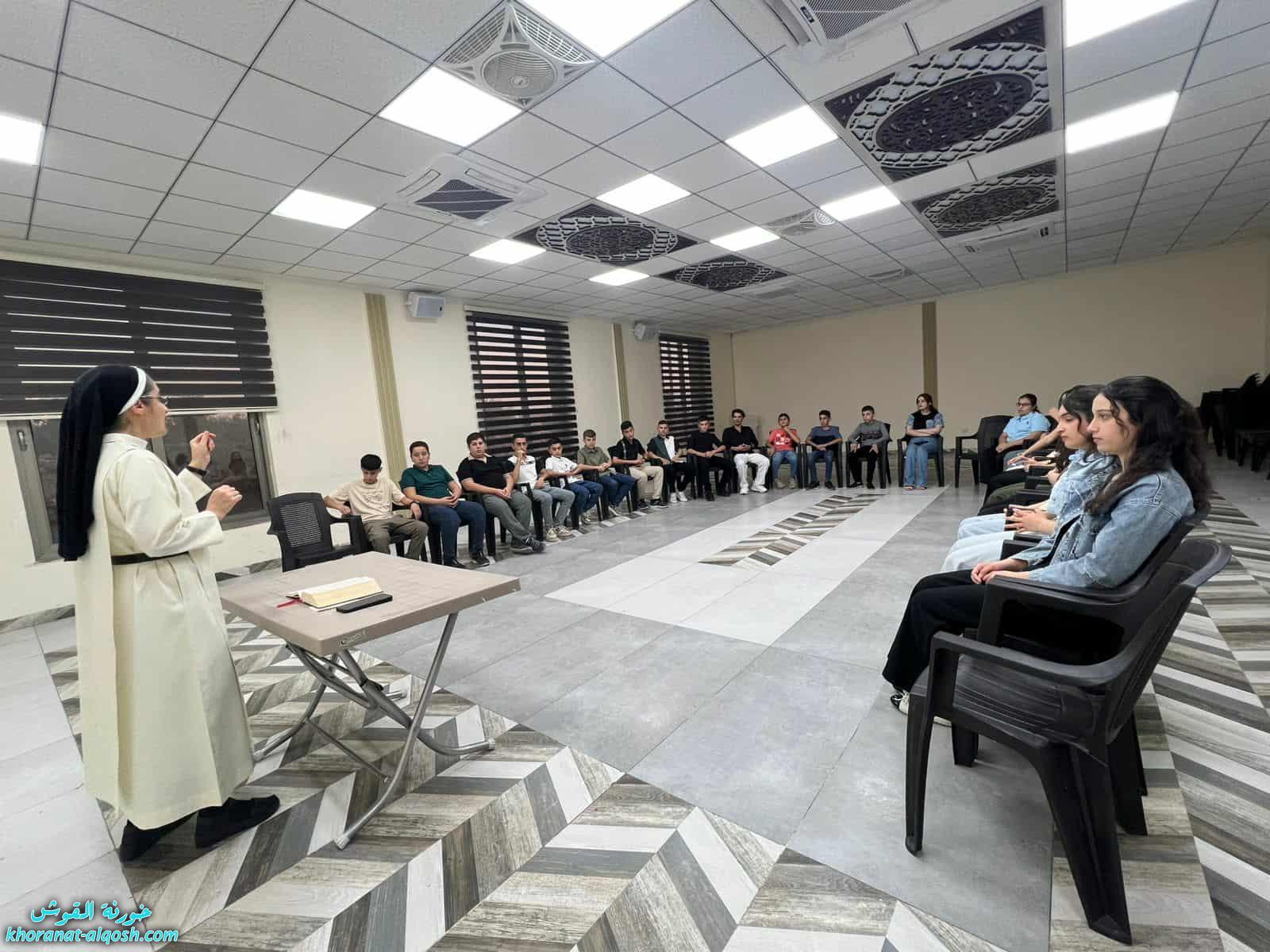 تجدد لقاء المرحلتين المتوسطة والإعدادية يوم الخميس الموافق ٢٣ تشرين الأول ٢٠٢٥ في قاعة مركز المرأة في القوش، وتم خلاله مقاسمة نص من إنجيل لوقا بعنوان “يسوع عند مريم ومرتا”.