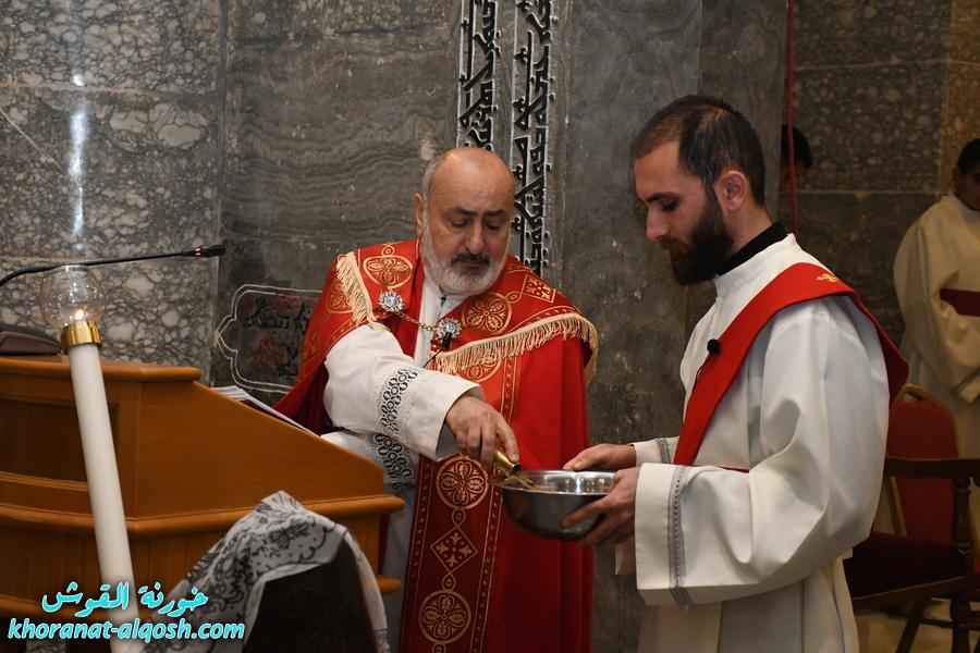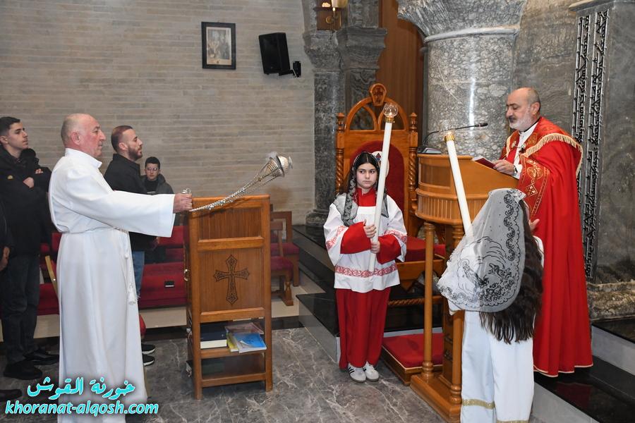 بدأت المراسيم بالصلاة الطقسية عند الساعة السابعة والنصف مساءً، تلاها القداس الإلهي الذي ترأسه الخوراسقف الاب د. غزوان يوسف شهارا