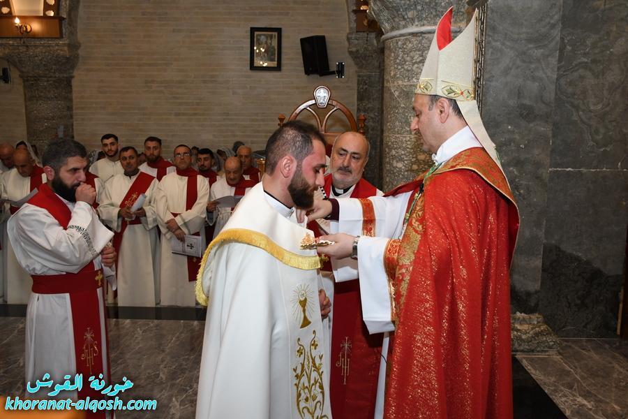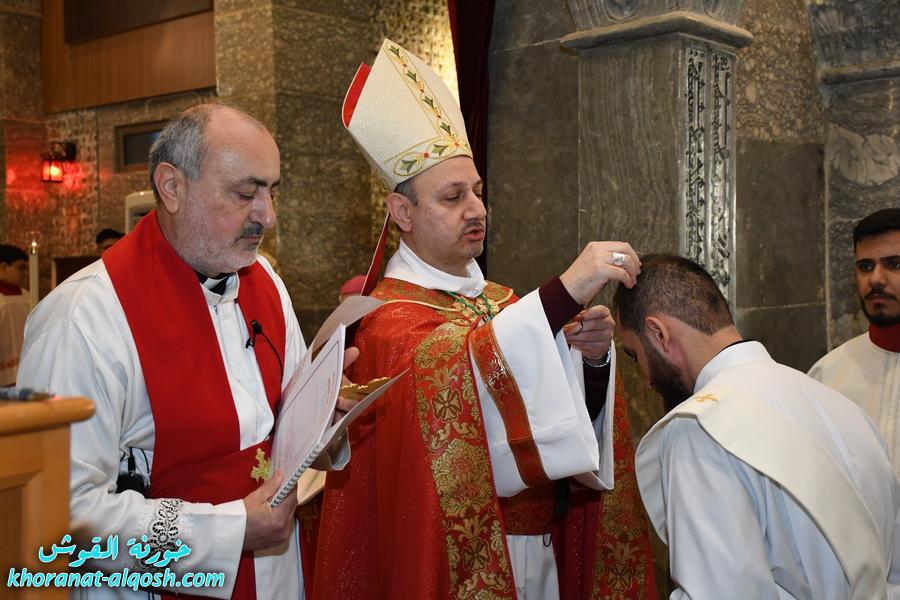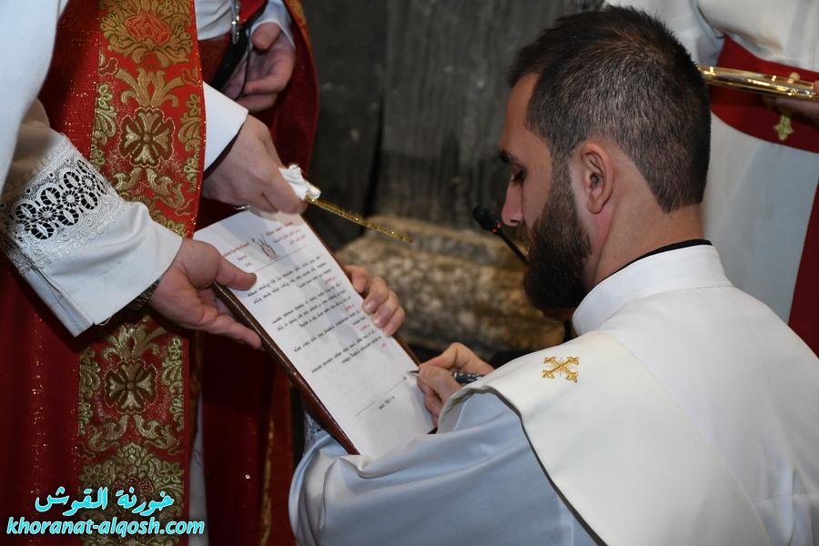 استُهلّ الاحتفال بزياحٍ مهيب تقدّم نحو المذبح المقدس، أعقبه كلمة ألقاها الخورأسقف الأب الدكتور غزوان شهارا، قدّم فيها نبذة تعريفية عن المرتسم ومسيرته الروحية. بعدها بدأت رتبة الرسامة المقدسة الخاصة بالمناسبة، تلتها إقامة القداس الإلهي الذي ترأسه سيادة المطران، وشاركه فيه الكاهن الجديد.