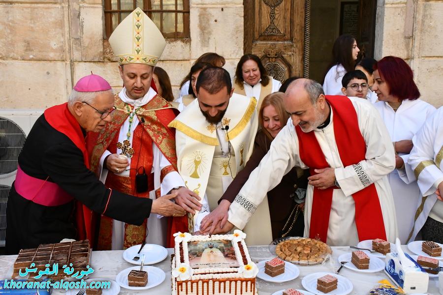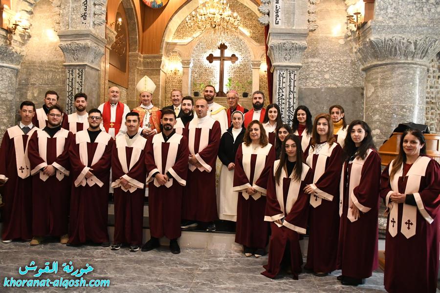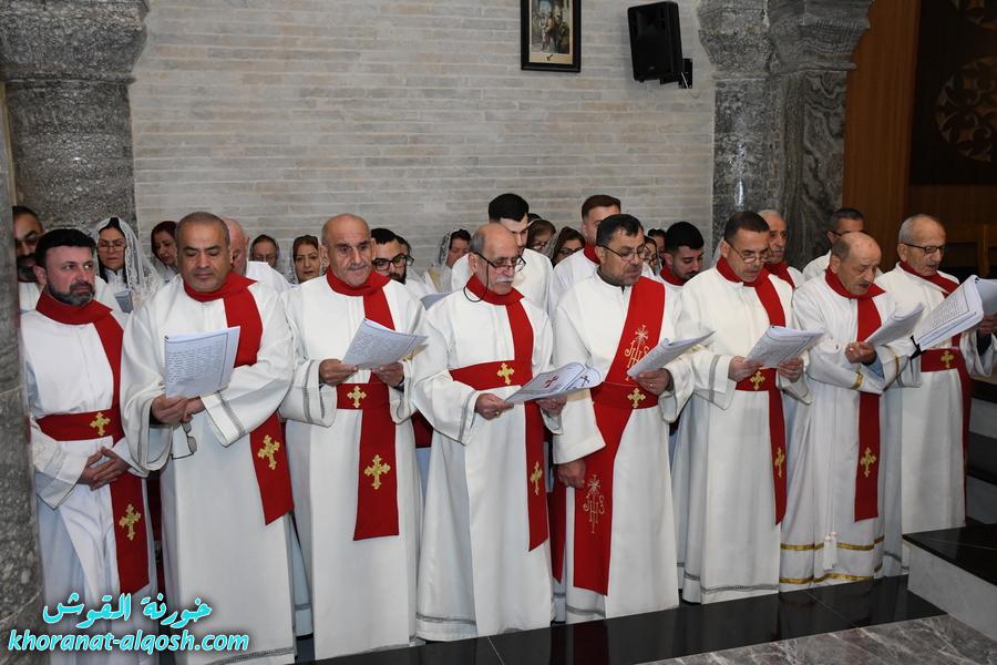 ترأس مراسيم الاحتفال سيادة المطران مار فيليكس سعيد الشابي، مطران زاخو والمدبر البطريركي لأبرشية القوش الكلدانية، بمشاركة الخورأسقف الأب الدكتور غزوان يوسف شهارا، خوري كنيسة القوش، وجمعٍ غفير من الكهنة والرهبان والراهبات والشمامسة والشماسات، إضافة إلى جوق الروح القدس.