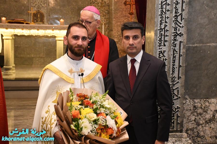 كما اشكر من اعماق القلب سيادة المطران مار فيليكس سعيد الشابي، مطران زاخو والمدبر البطريركي لابرشية القوش الكلدانية، على دعمه الكريم، وعلى قيامه باتمام هذه المراسيم المقدسة، واضعا بيده الابوية ختم البركة على هذا اليوم التاريخي في حياتي.