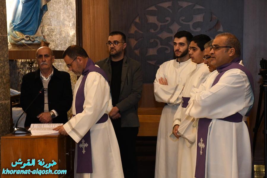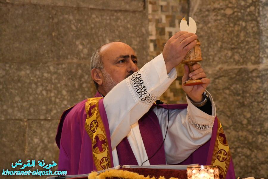 بدأت المراسيم بإقامة الصلاة عند الساعة الثالثة بعد الظهر، تلاها القداس الإلهي في تمام الساعة الخامسة مساءً، والذي ترأسه الخورأسقف الاب د. غزوان يوسف شهارا، وبمشاركة الشمامسة وحضور جمع من المؤمنين.