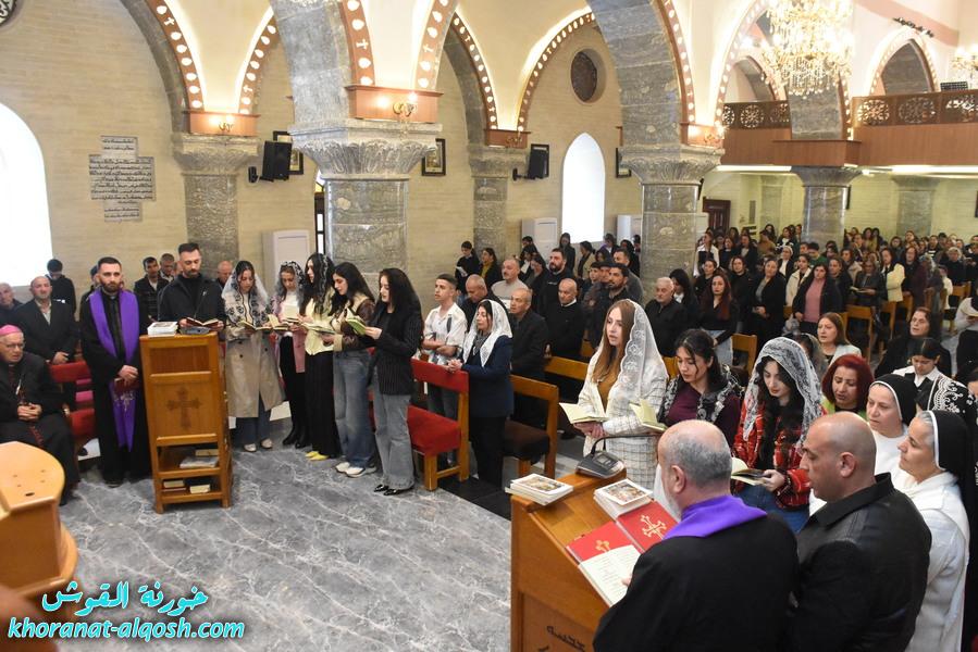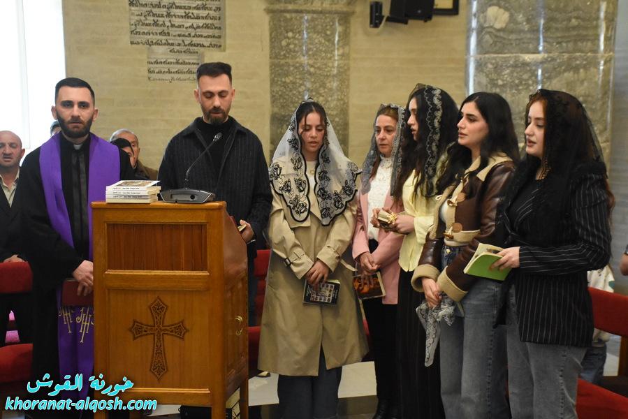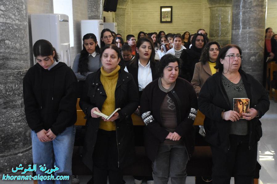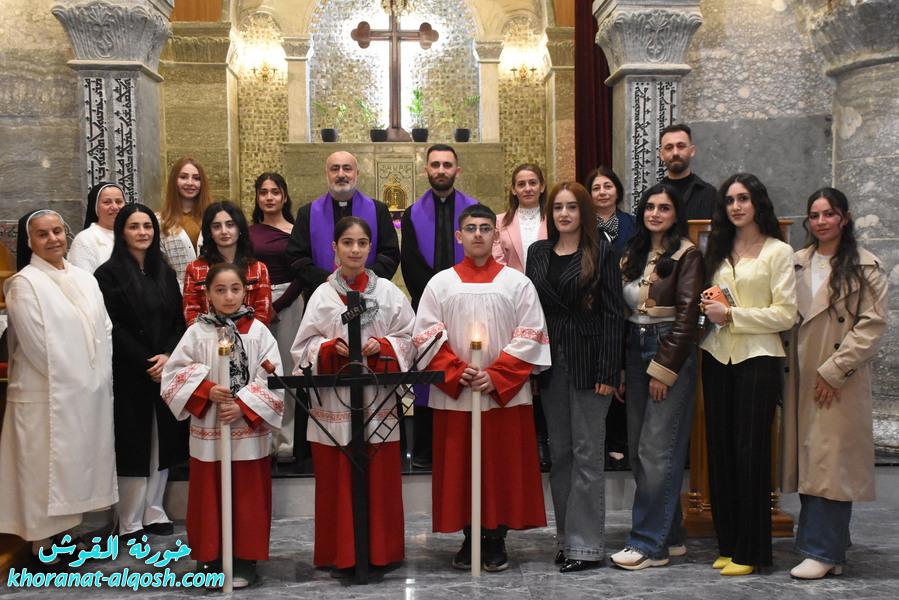 اقيمت في كنيسة مار كوركيس – القوش، رتبة درب الصليب المقدس في زمن الصوم الكبير للجمعة الثالثة 6 اذار 2026، بمشاركة كادر التعليم المسيحي خلال قراءة مراحل درب الصليب الأربعة عشر، بمشاركة الخوراسقف الاب د. غزوان يوسف شهارا والأب اندرو جما يذكر ان رياضة درب الصليب، هي رتبة طقسية تقام في زمن الصوم الكبير، وتقرأ فيها نصوص صلب السيد المسيح على أربع عشر مرحلة من العهد الجديد إلى جانب بعض المراحل المأخوذة من التقاليد المسيحية. وترفق كل مرحلة من المراحل بتلاوة صلاة الأبانا والسلام الملائكي، وتأمل اجتماعي أو روحي معيّن. وتقام رتبة درب الصليب في الكنيسة الكاثوليكية.
