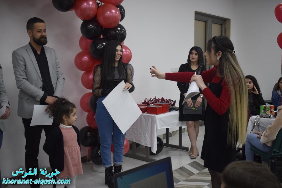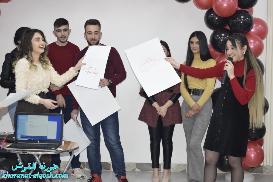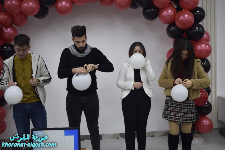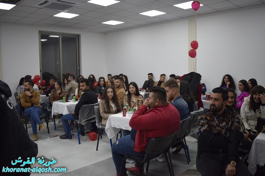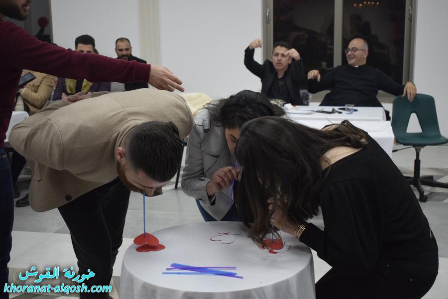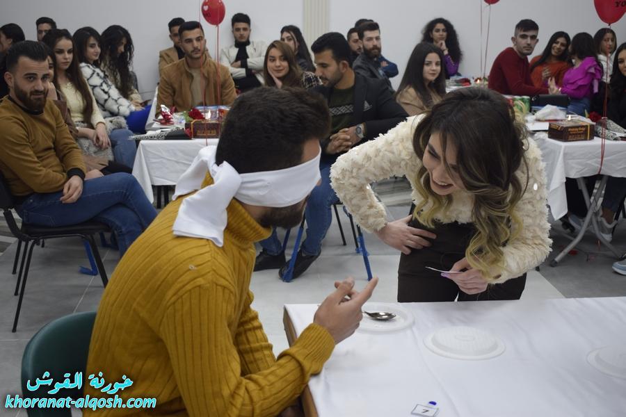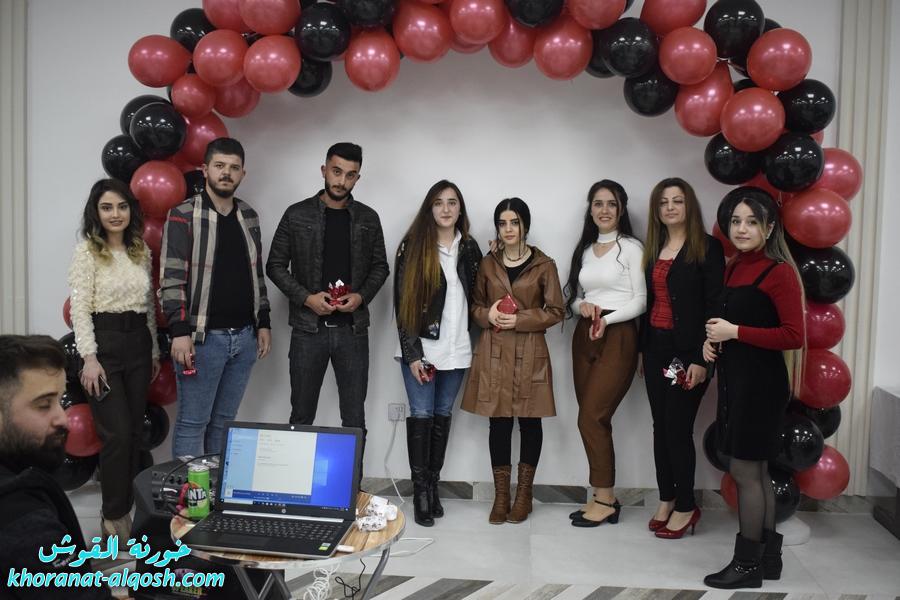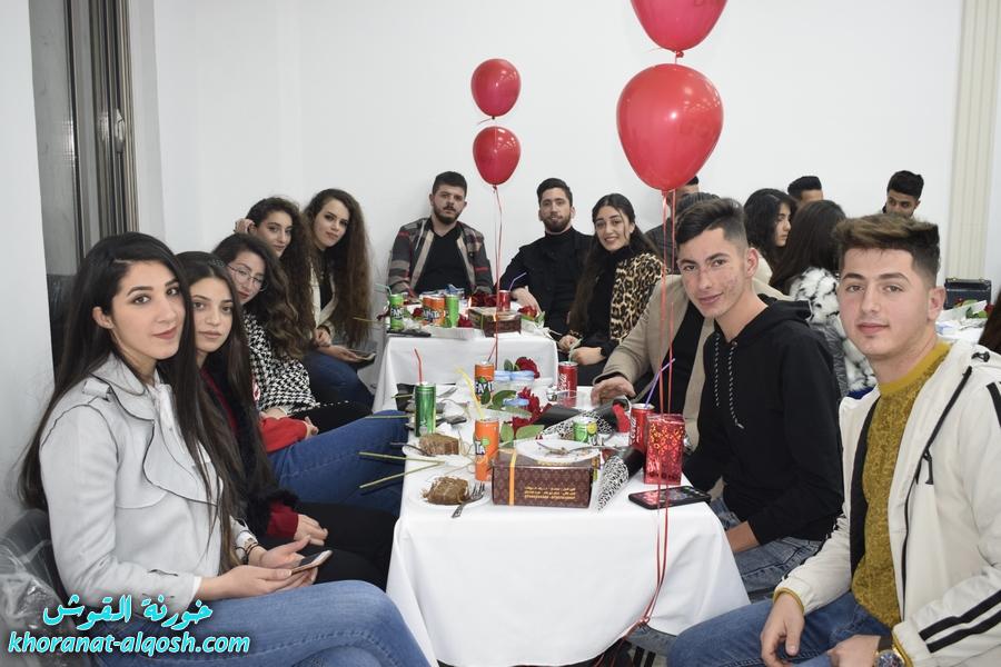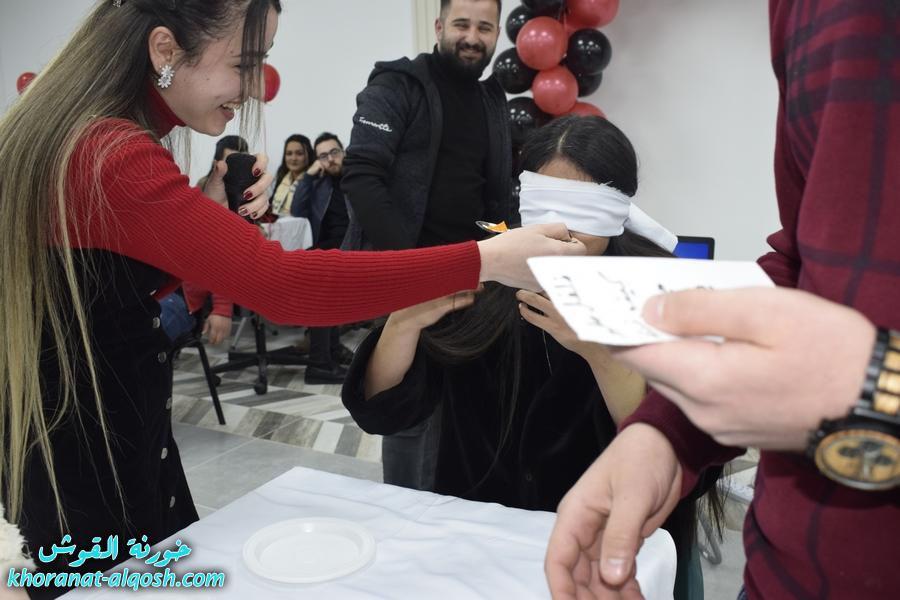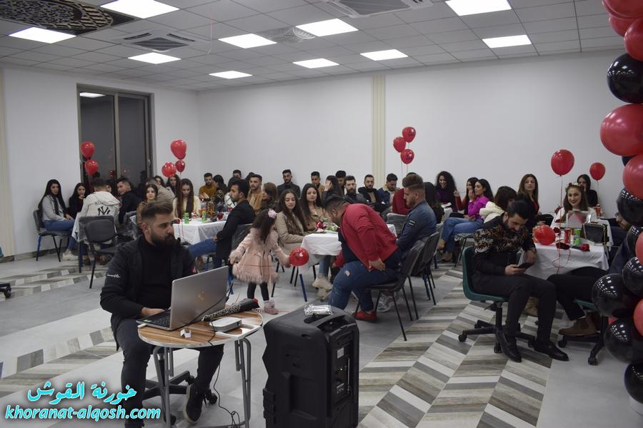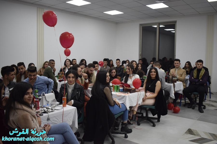 أقام لقاء الشباب الجامعي في القوش احتفالية بمناسبة عيد الحب ( الڤالنتاين ) وذلك يوم الجمعة المُصادف 19 شباط 2021 في مركز المرأة حضرهُ ما يقارب مئة شاب وشابة.