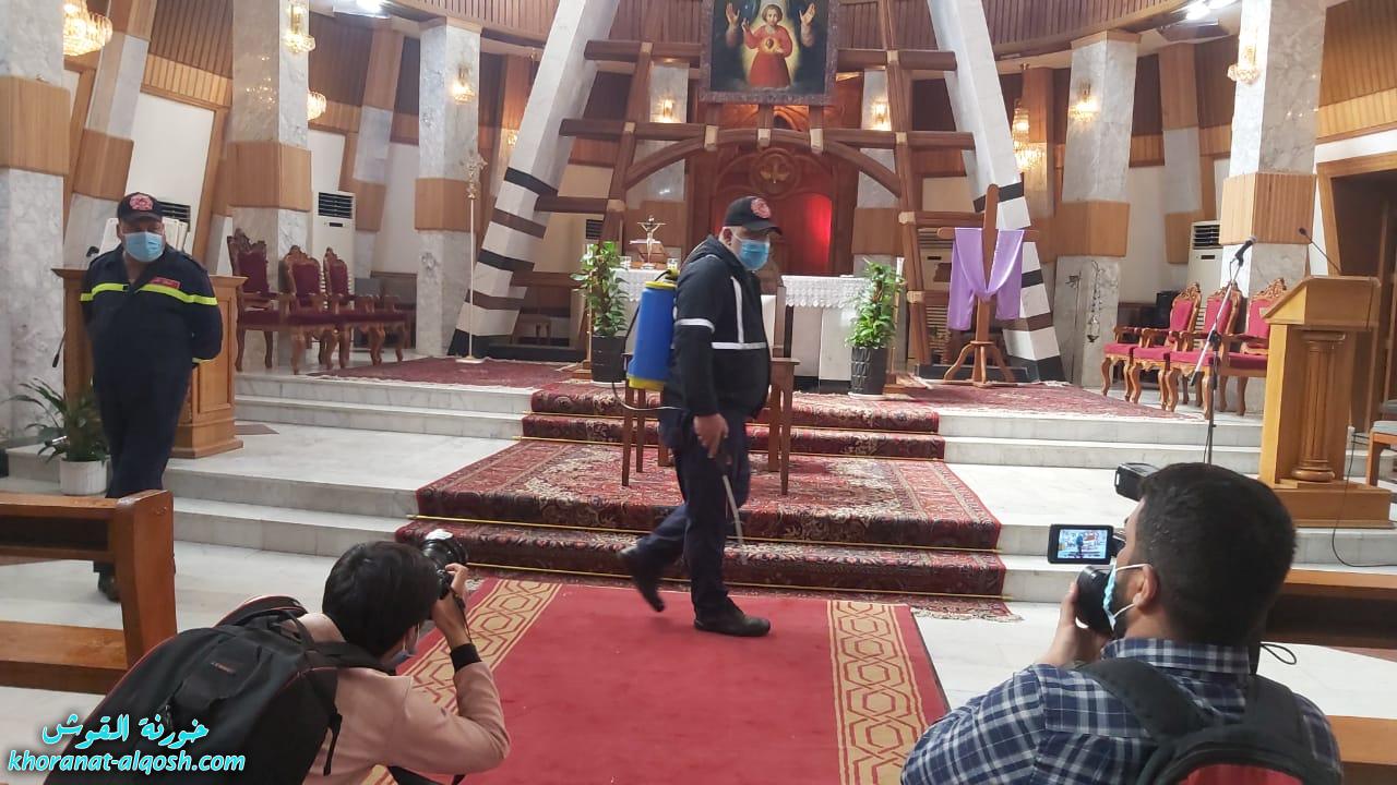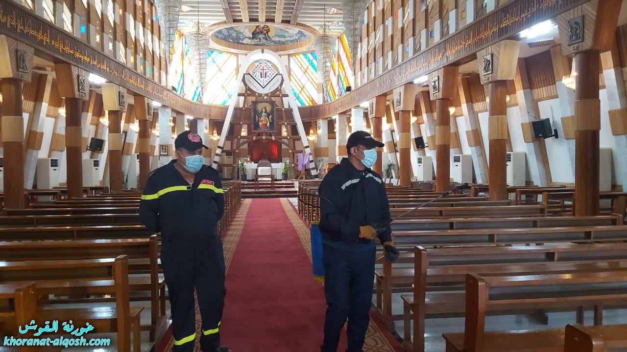 وكالات/أعلنت مديرية الدفاع المدني، تعقيم وتعفير كنيستي سيدة النجاة ومار يوسف في منطقة الكرادة وسط العاصمة بغداد، استعداداً لزيارة بابا الفاتيكان إلى العراق.